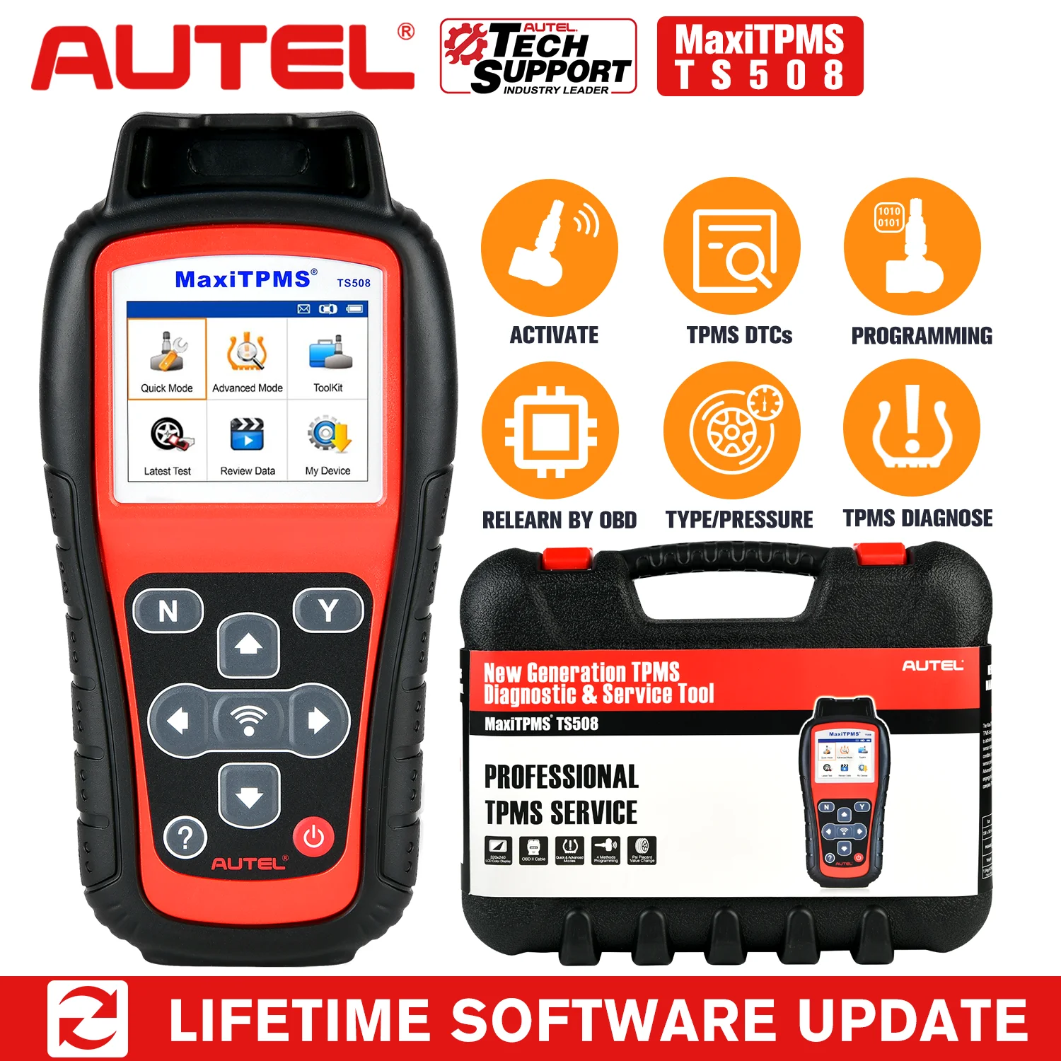 Autel MaxiTPMS®TS508-это новое поколение, полный диагностический инструмент TPMS, специально разработанный для активации всех датчиков TPMS, считывания статуса датчика TPMS, проверки состояния системы TPMS, программирования mx-датчиков и проведения повторного обучения TPMS. В зависимости от требуемого типа обслуживания, возможность выбора быстрого или расширенного режима обслуживания TPMS уменьшит время ремонта.
