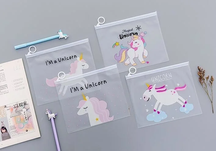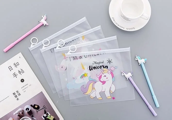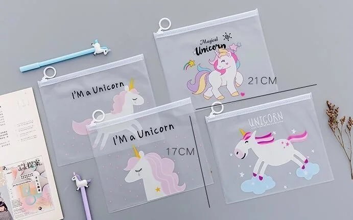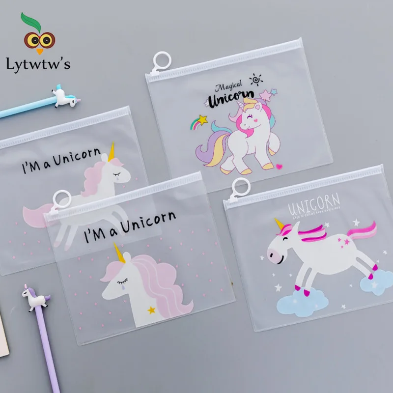 Новая Корейская школьная Канцелярия Lytwtw 1 шт., милые Креативные конверт из ПВХ для получения, полупрозрачная папка с единорогом