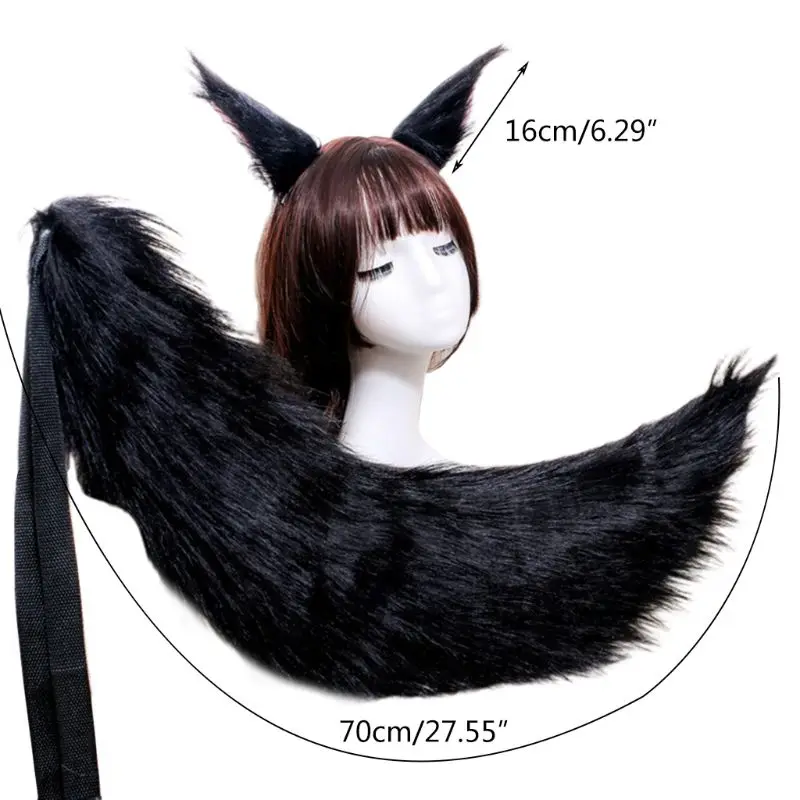 Аниме Косплей Костюм Аксессуары для взрослых детей плюшевый Кот Волк уха шпилька сплошной цвет длинный животный хвост милый