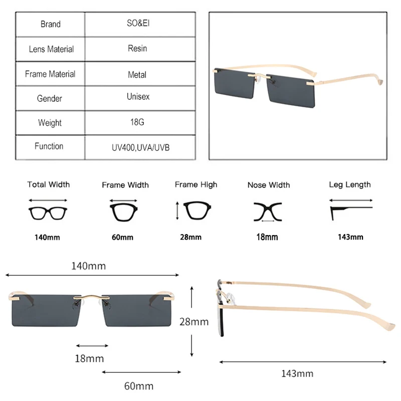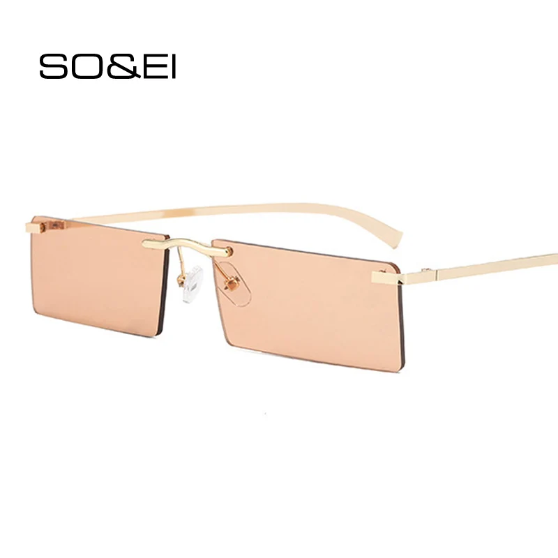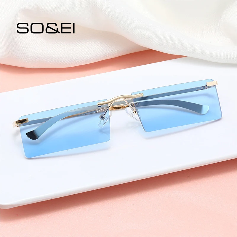 Женскиемужские солнцезащитные очки без оправы SO EI, небольшие прямоугольные очки без оправы, с прозрачными океанскими линзами, с защитой UV400
