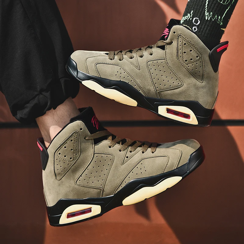 Профессиональная Мужская обувь для баскетбола в стиле ретро 6s армейский зеленый цвет спортивные кроссовки с карманами высокое качество TS беговые кроссовки