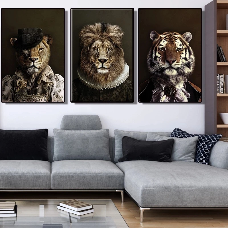 Современные картины на холсте с изображением Льва, семейства животн...