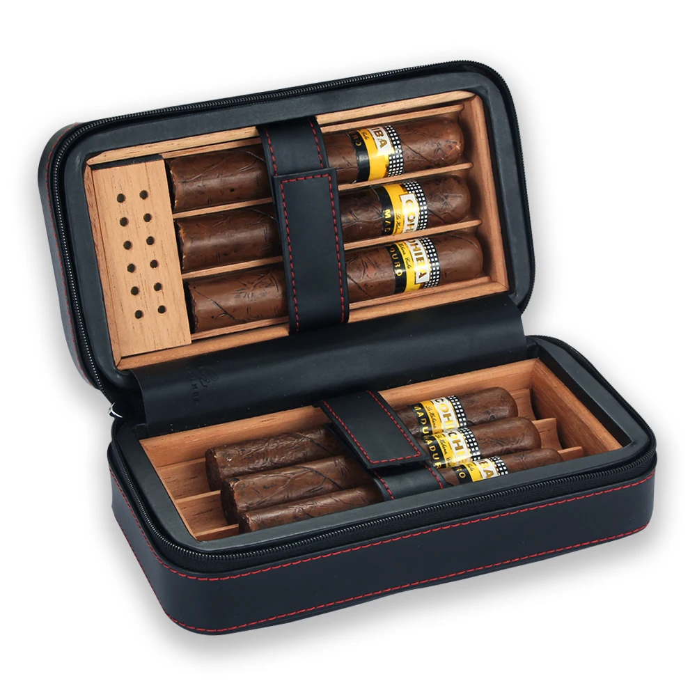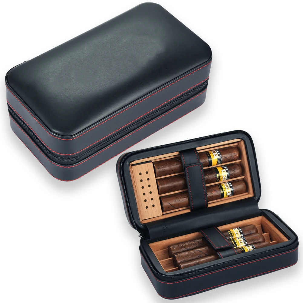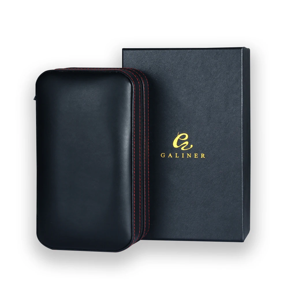 Дорожная коробка для кожаный сигарный хьюмидор Galiner, чехол для сигар из кедрового дерева с 4 держателями, с увлажнителем и гигрометром, подарочная коробка