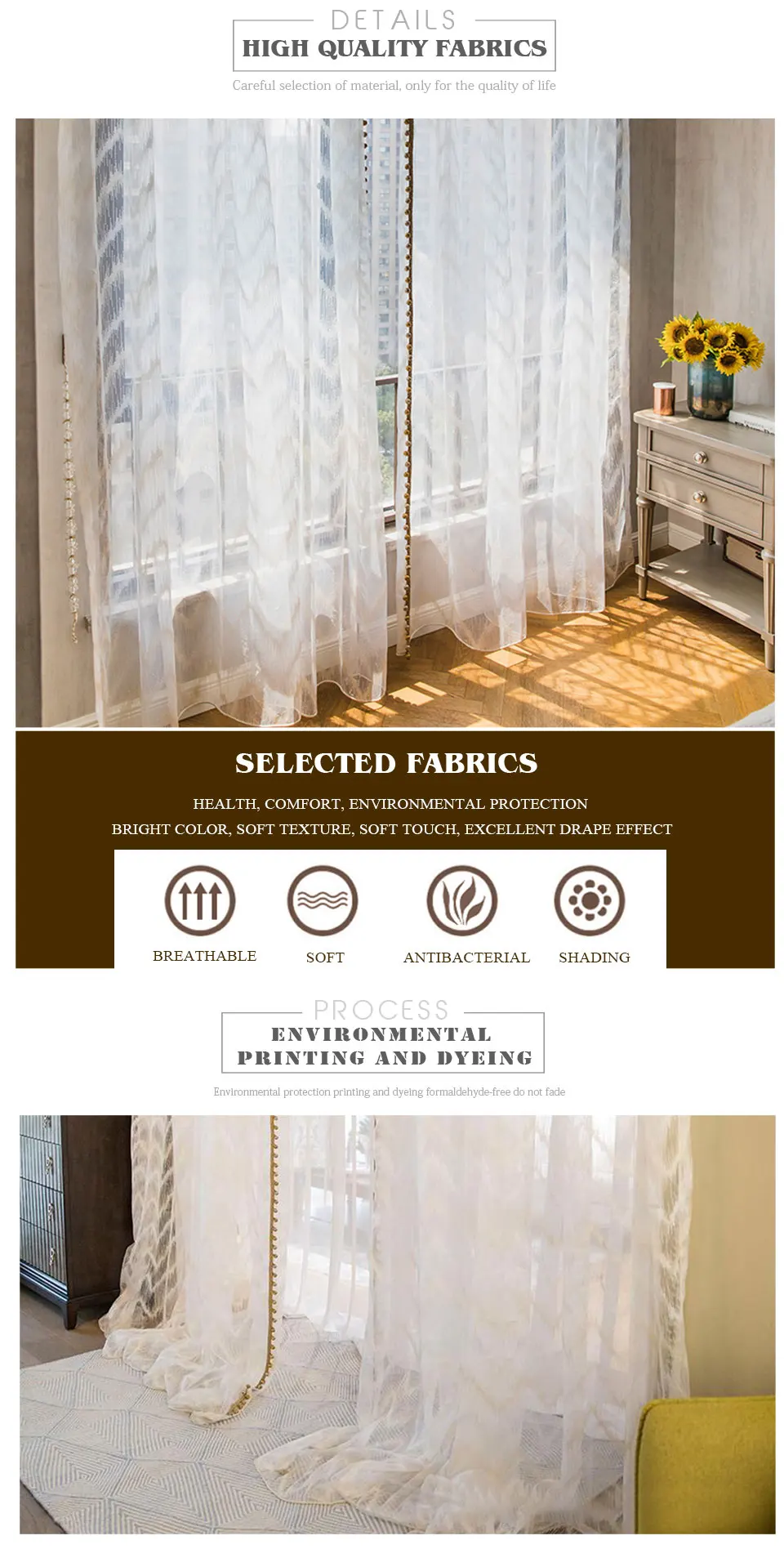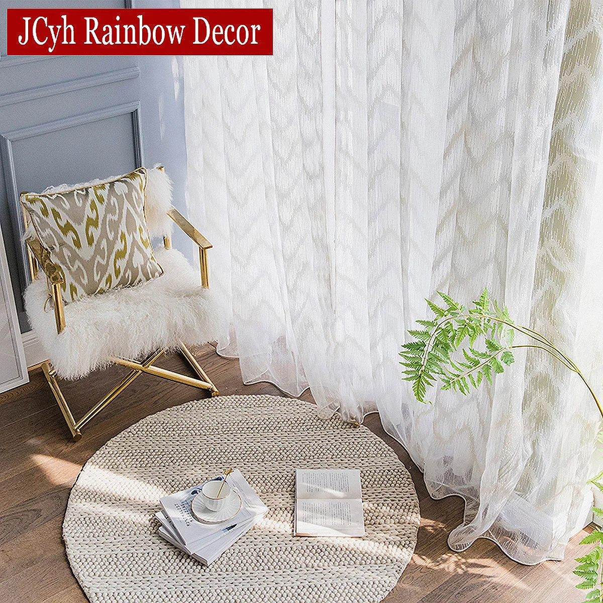 Тюлевые шторы с волнами кремового цвета, прозрачные Занавески для гостиной, для спальни, вуаль в полоску, занавески на окна, драпировки