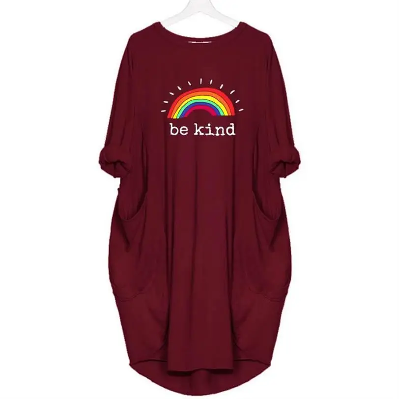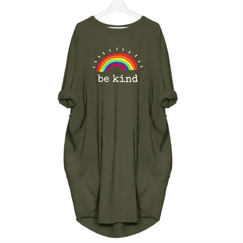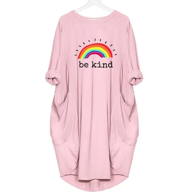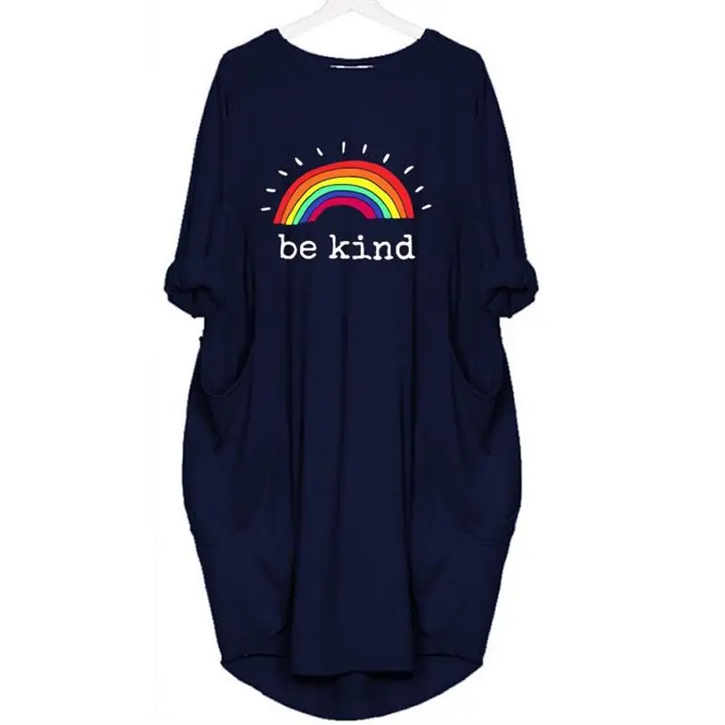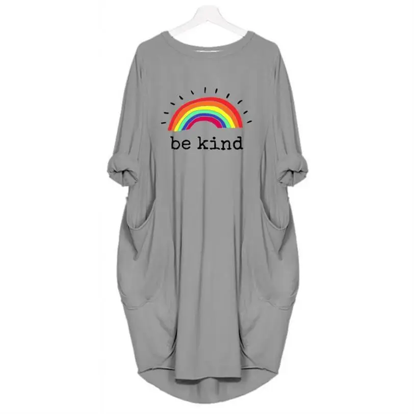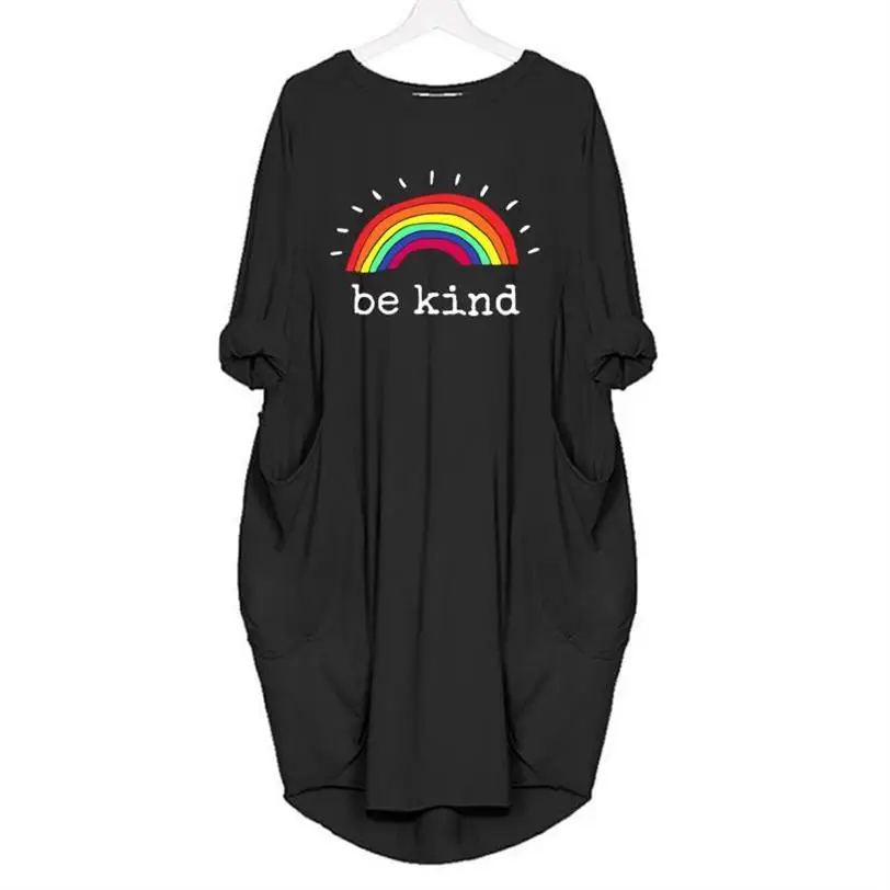 Женское пляжное платье с карманом Be Kind, повседневное свободное платье с радужным принтом, с цветочным принтом, лето размера плюс, 5XL
