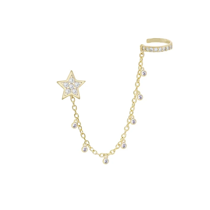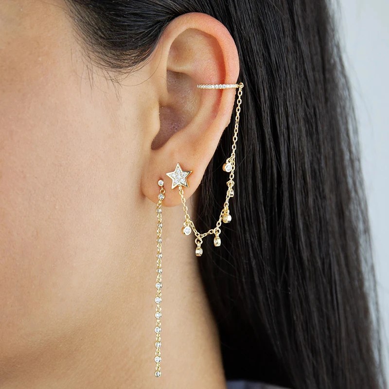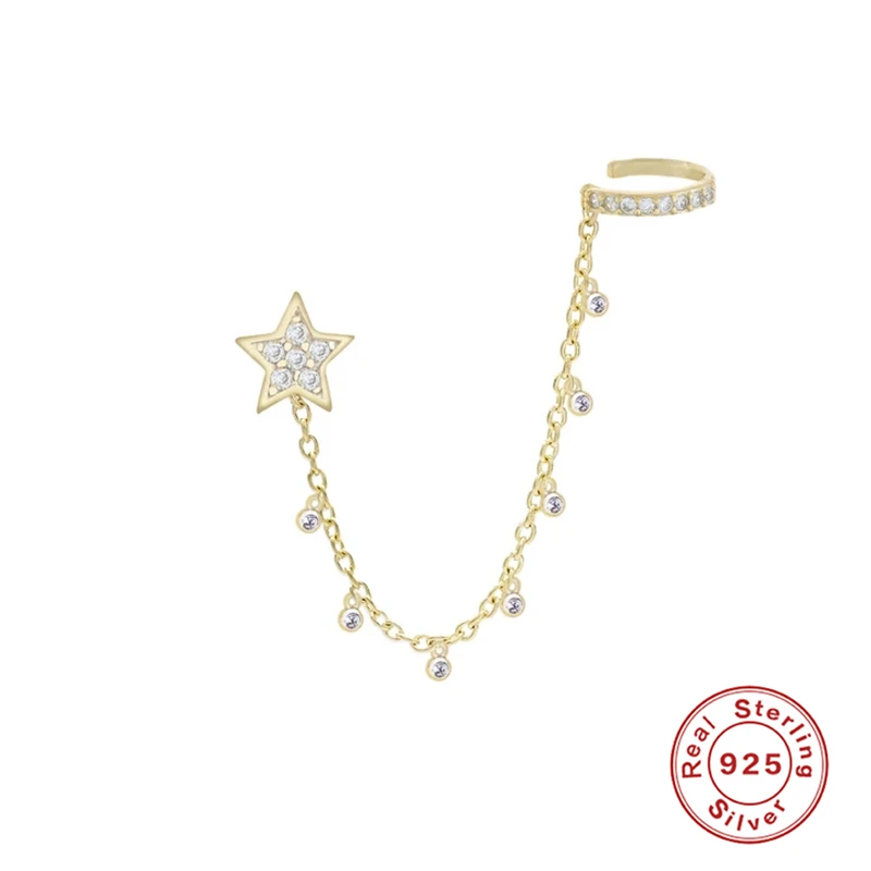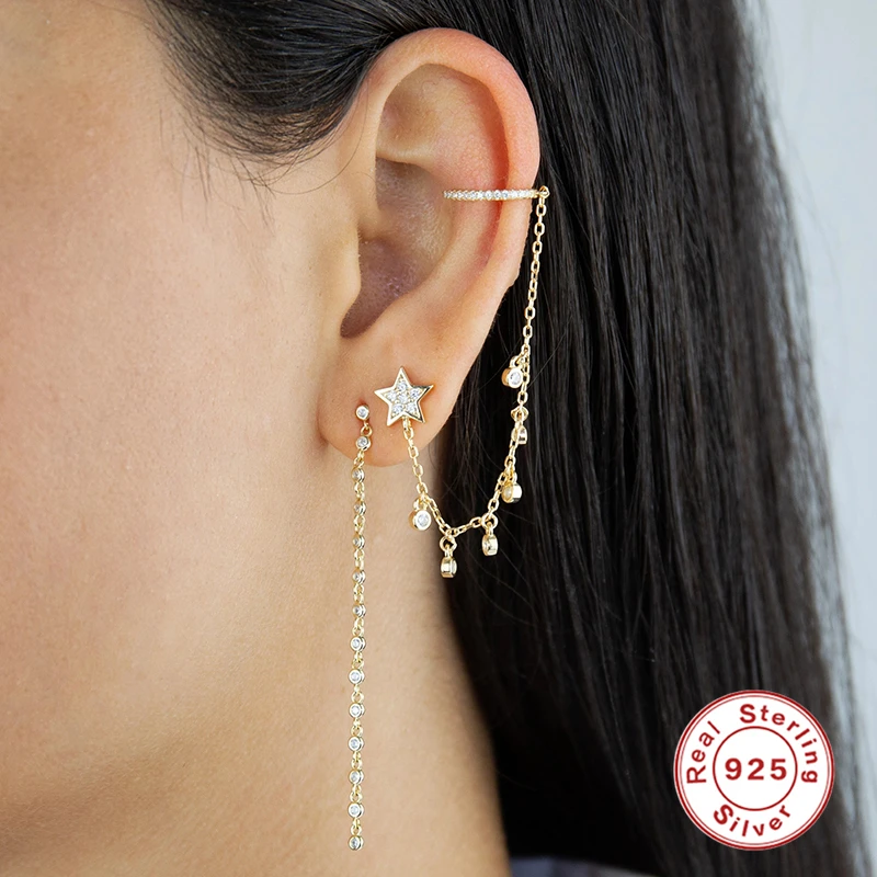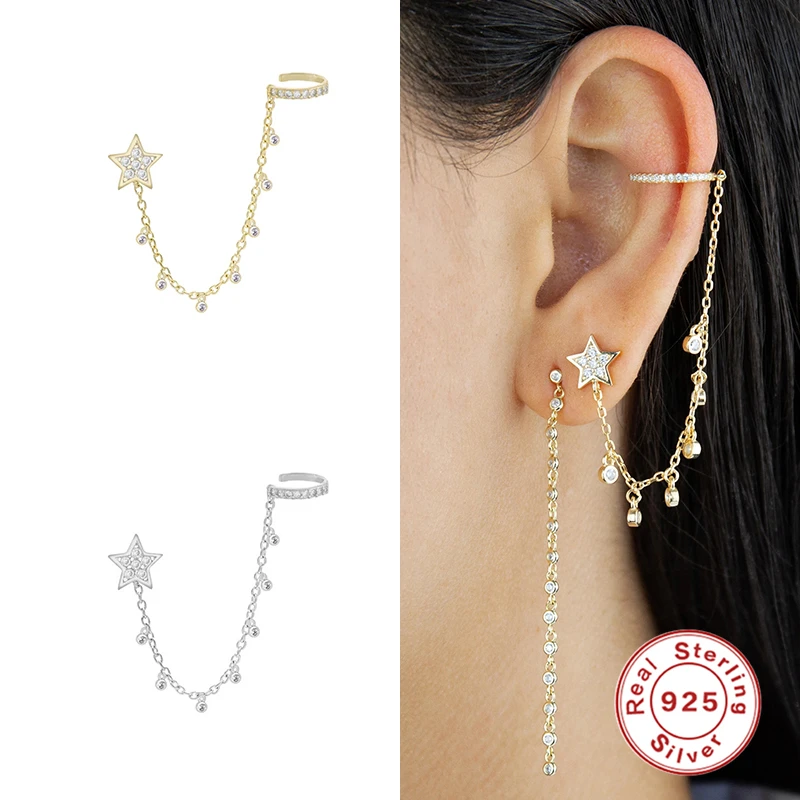 Aide, подвеска в виде звезды из стерлингового серебра 925 пробы, длинные серьги-клипсы с кисточками, асимметричные для ушей, манжеты, клипсы, серьги для девочек, рождественский подарок