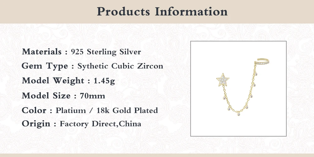 GS 925 пробы Серебряная Ушная манжета Клип цепи серьги для женщин Ц...
