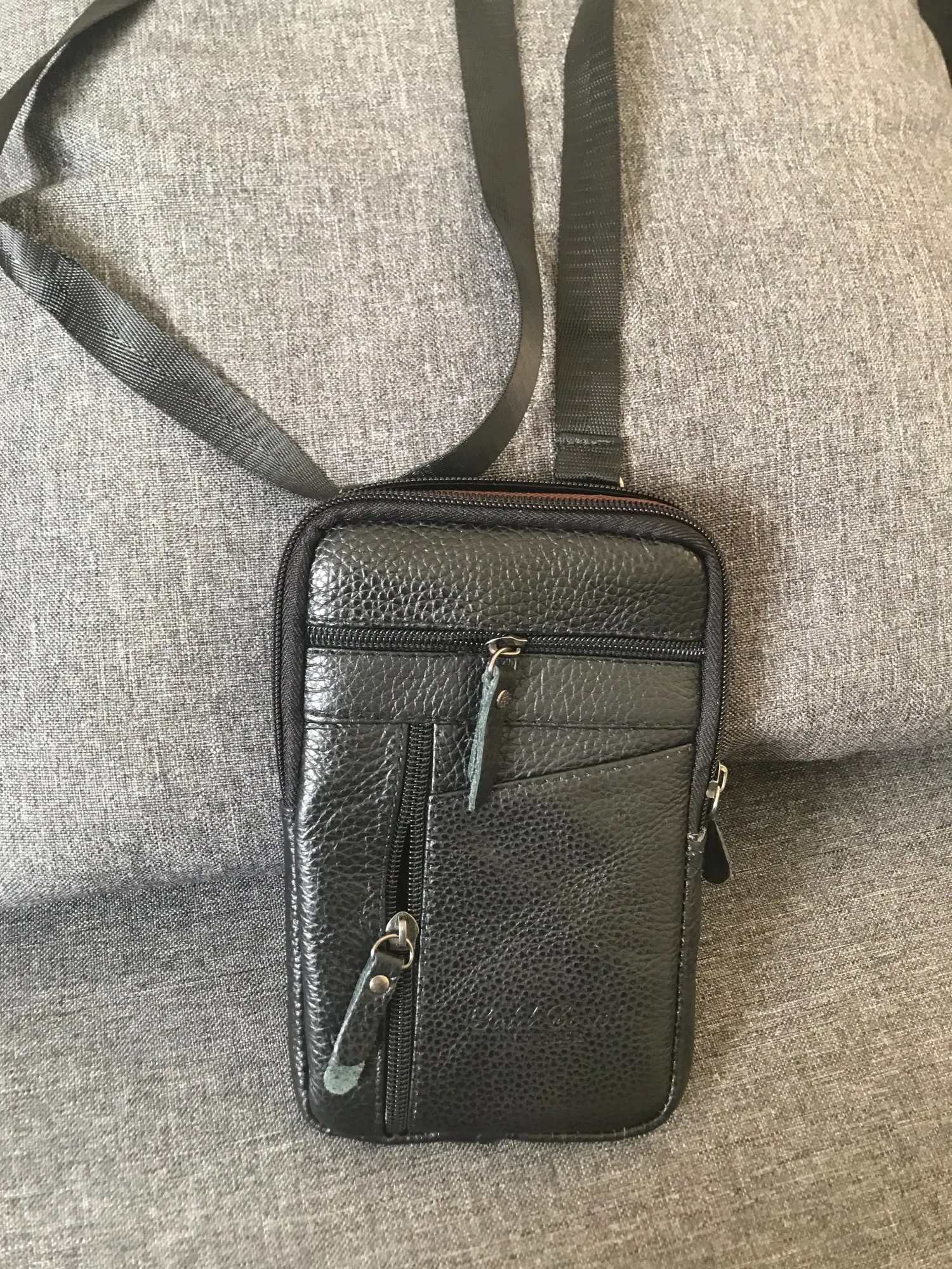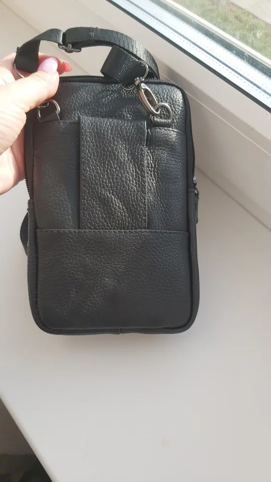 сама сумка из кожзама.кое где неровная строчка,есть места где торчат нитки.но паспорт,деньги,мобильник вмещает.доставка около месяца до Витебска.трек отслеживаться до почты.отправил быстро.в целом приемлемый товар.