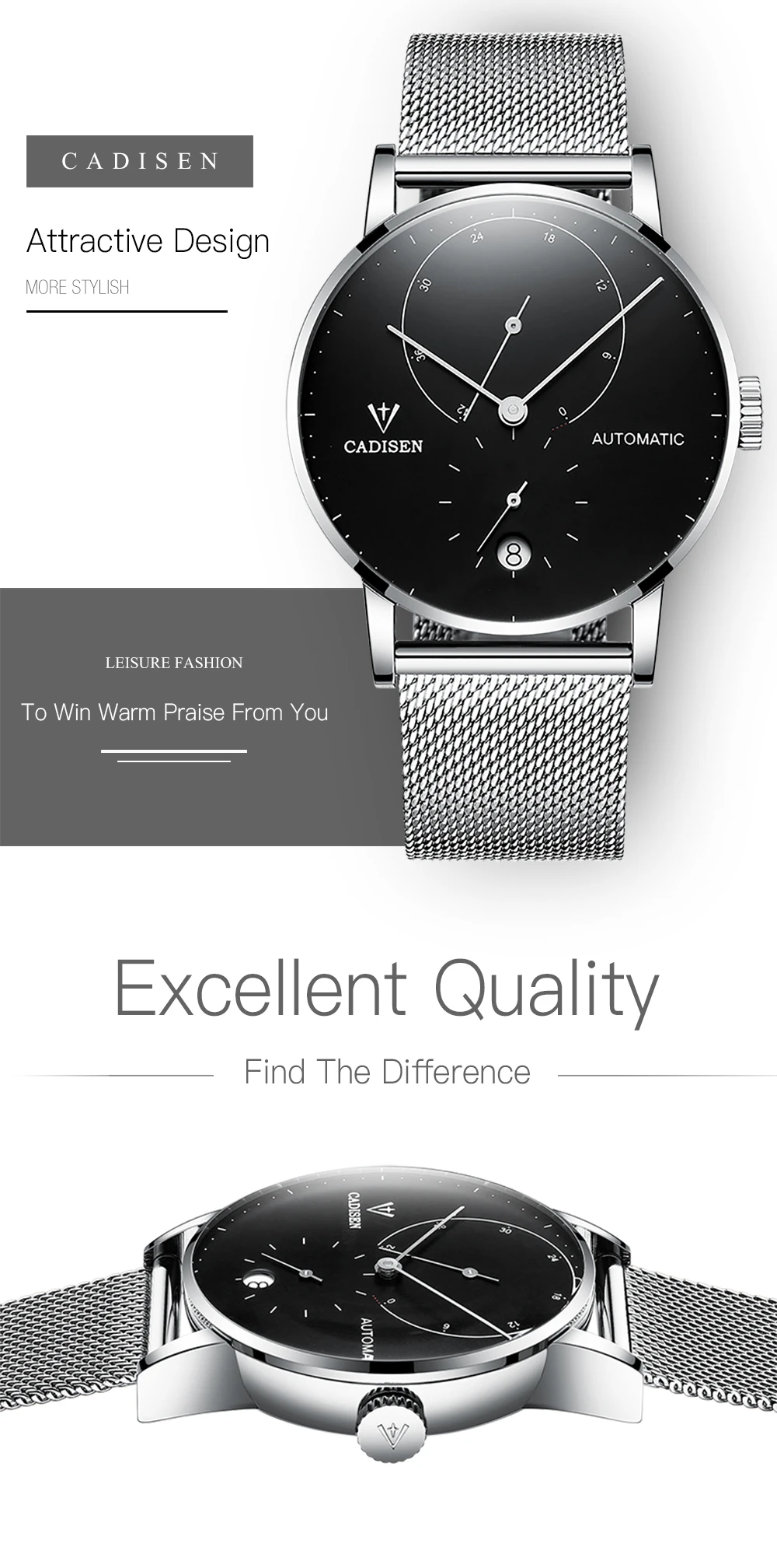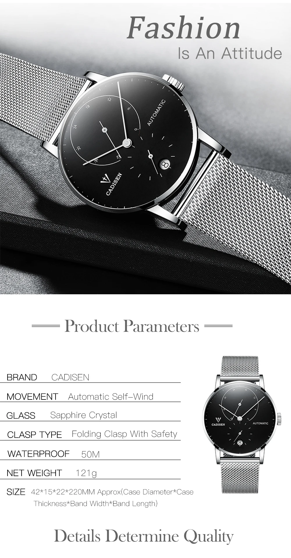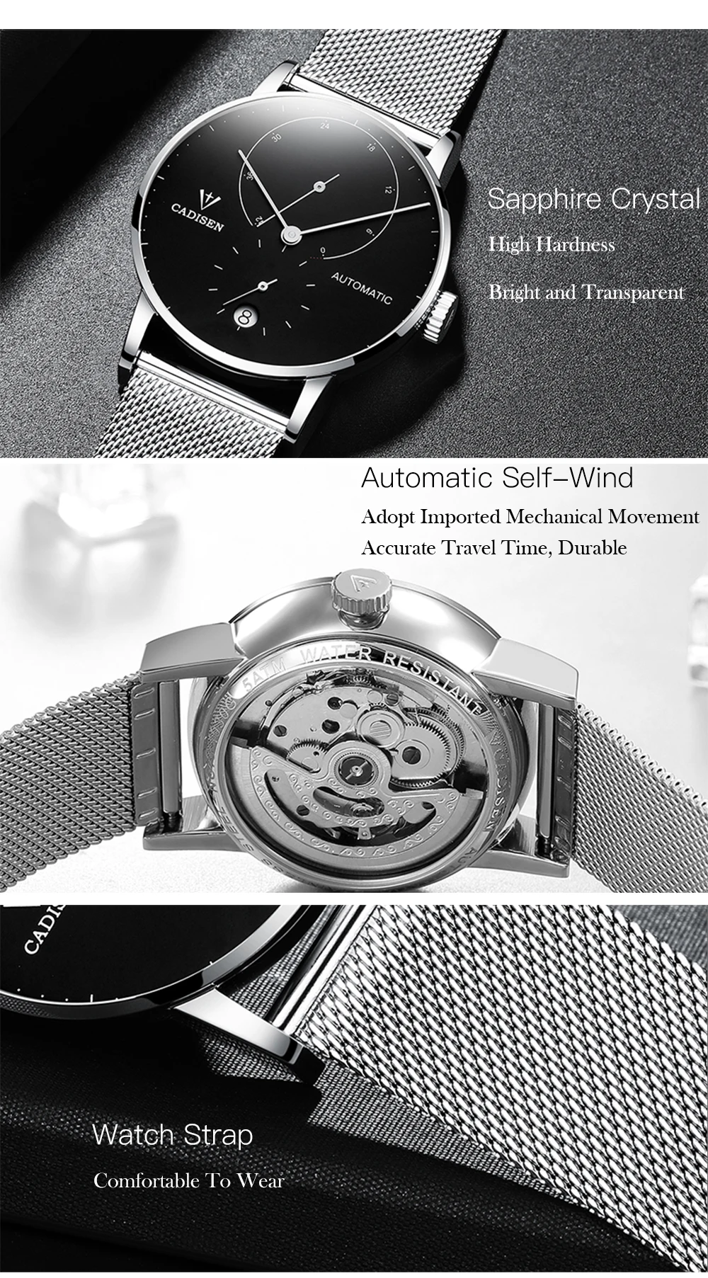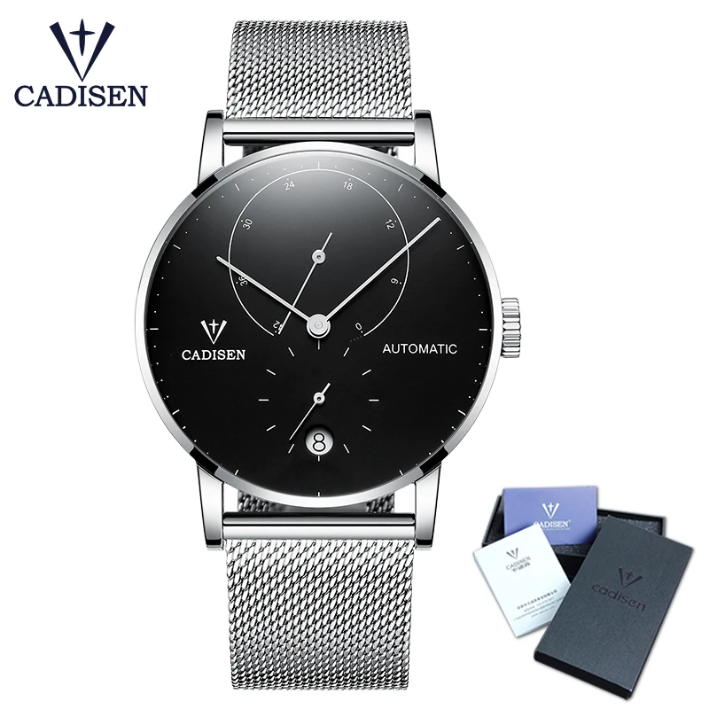 CADISEN Для мужчин часы Чайка 2813 движение Для мужчин t автоматические механические часы Автоматическая Дата Наручные часы Для мужчин 5ATM Водонепроницаемый календарь часы