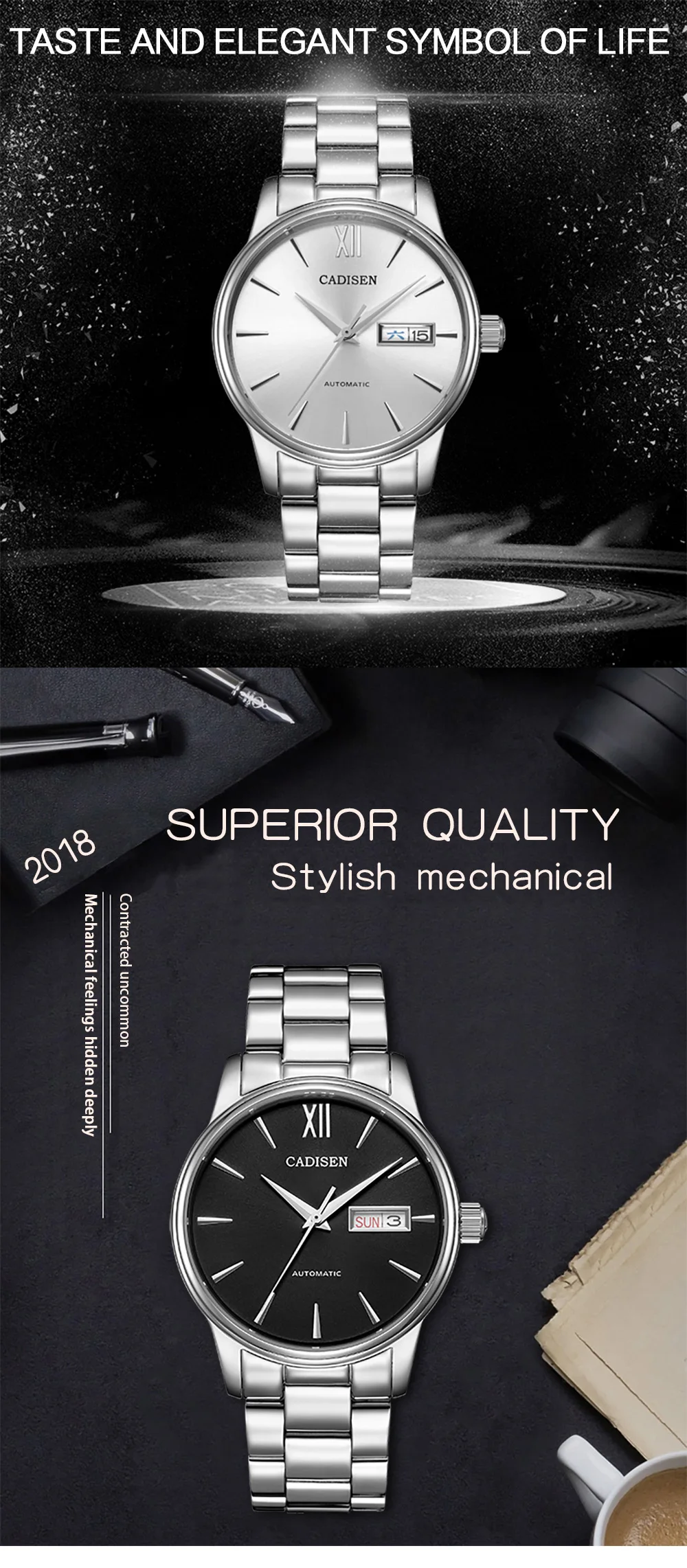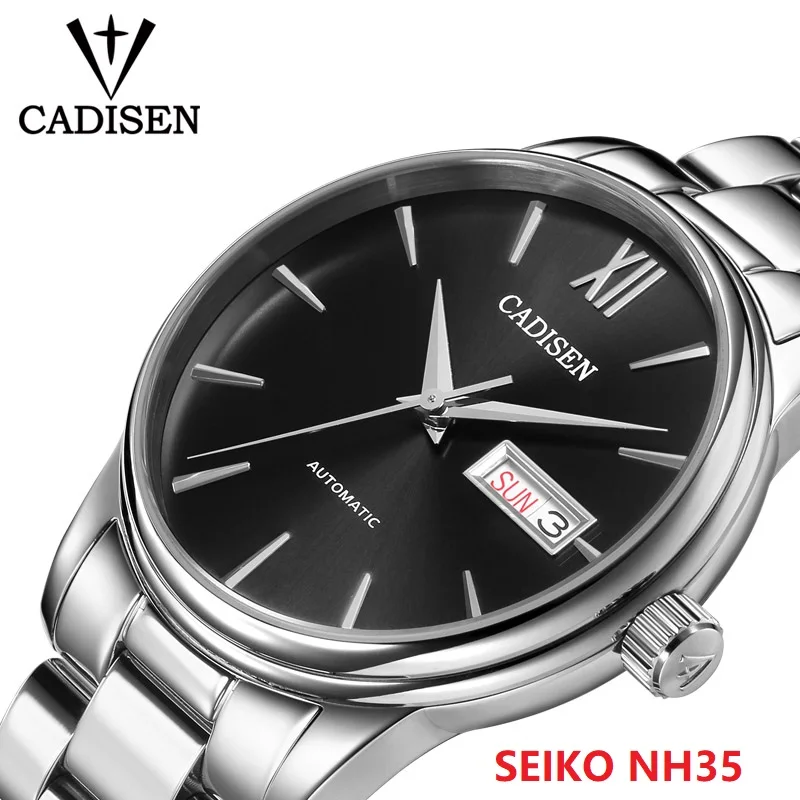 Часы наручные CADISEN NH35 Мужские механические, автоматические водонепроницаемые (5 атм) с календарем и датой, с отображением недели