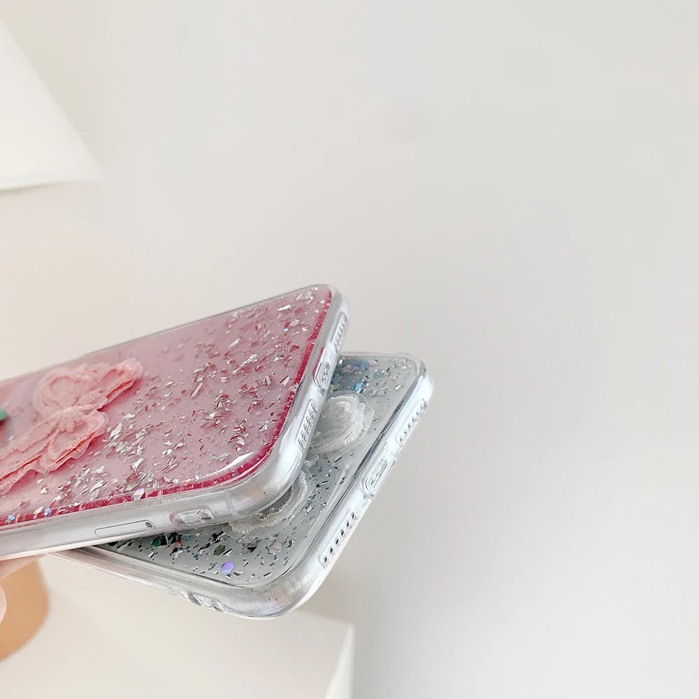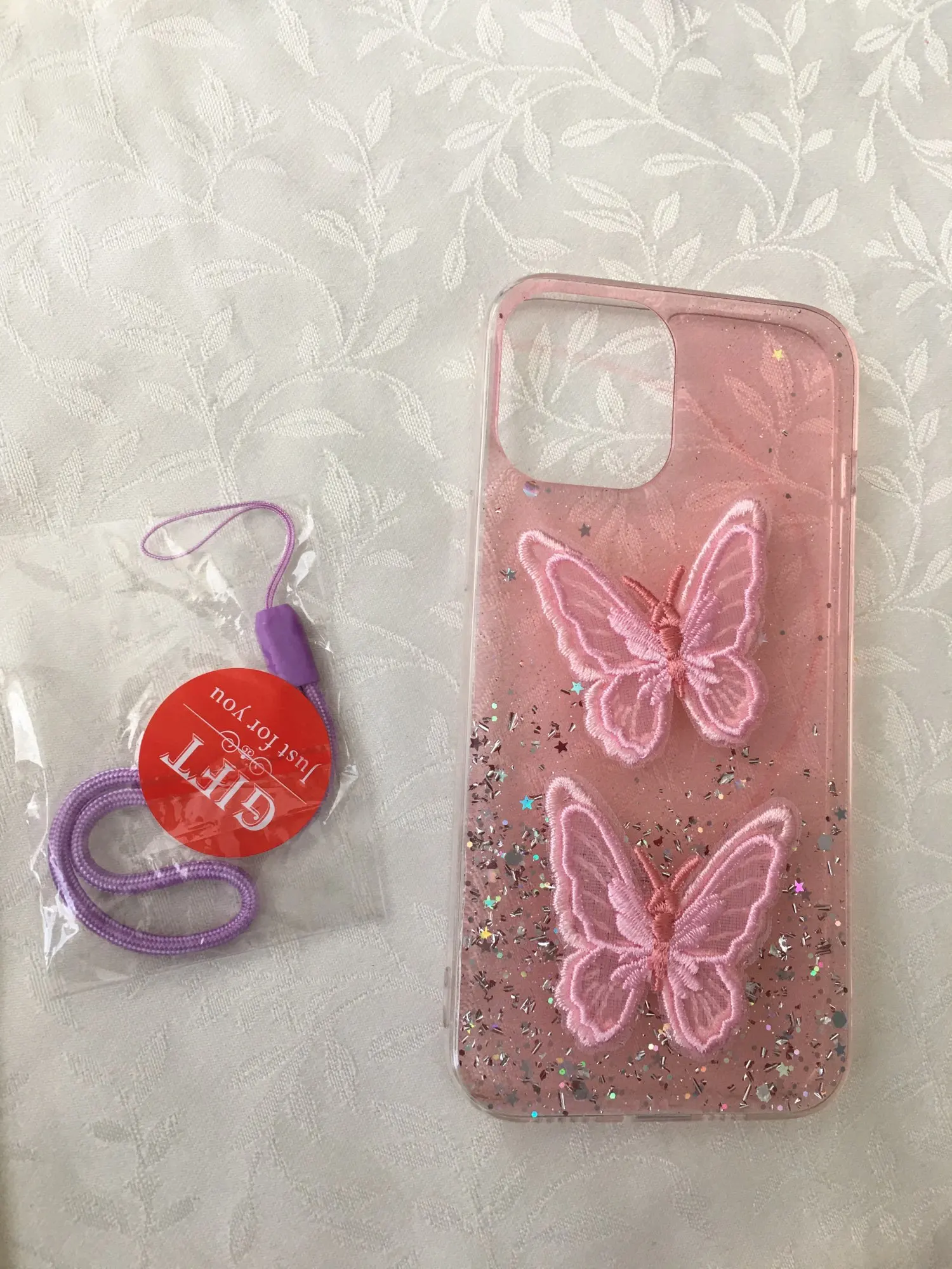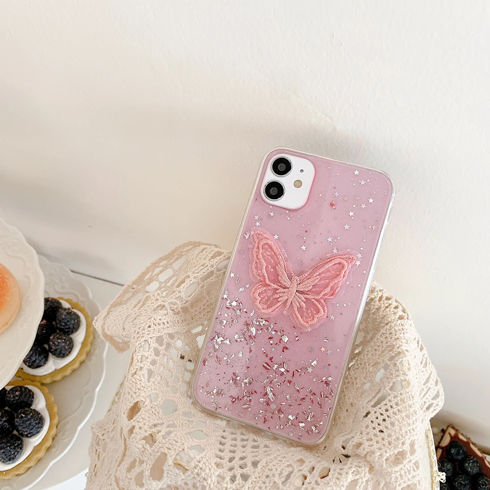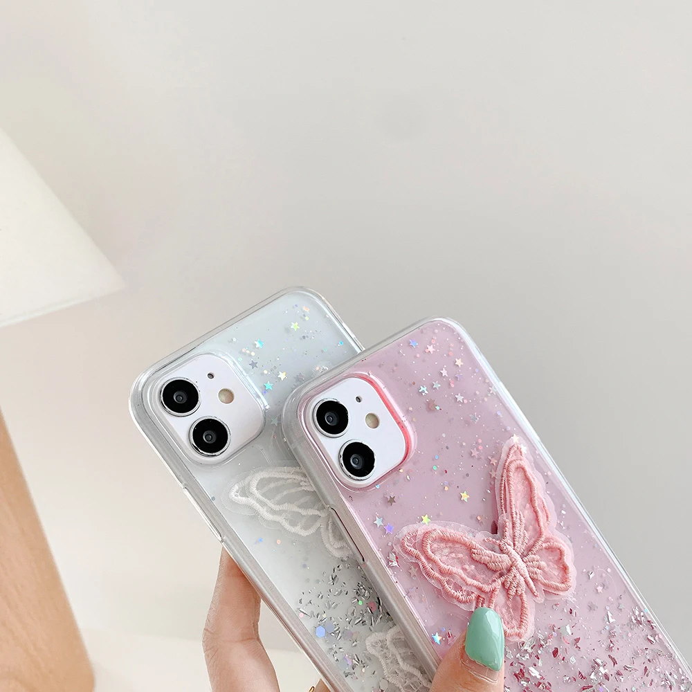 Силиконовый чехол для IPhone 13, 12, 11 Pro, XS, X, XR Max, 6S, 7, 8, 10 Plus, SE 2020, с блестками и бабочками