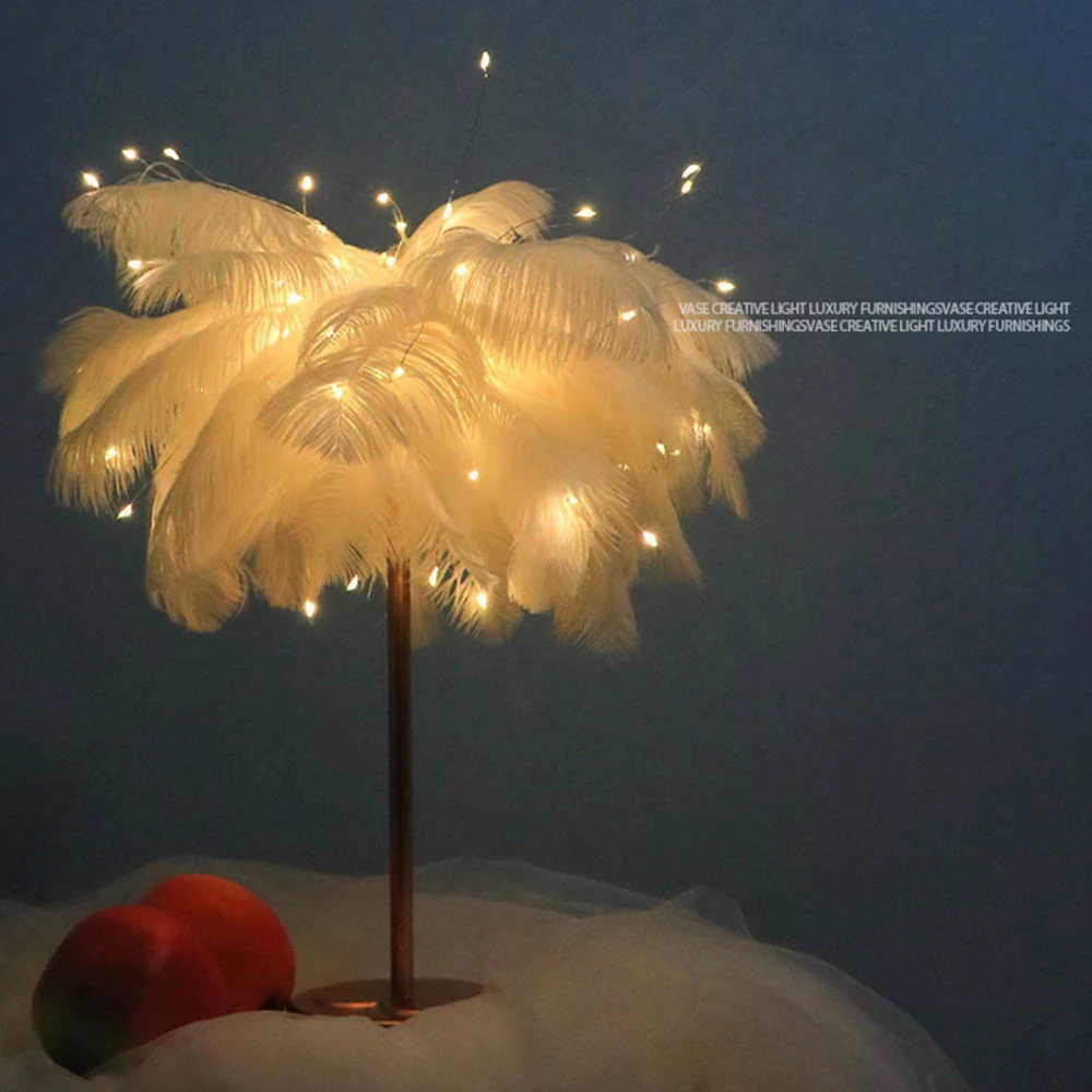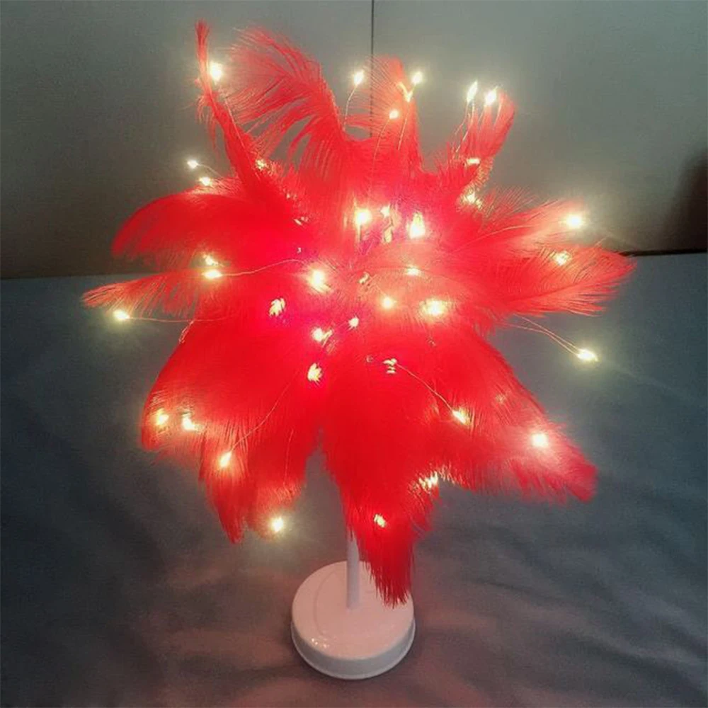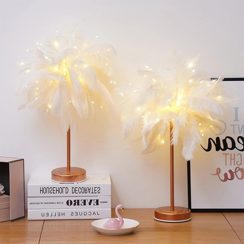 Настольная лампа сделай сам с абажуром из перьев, креативный светильник с теплым белым светом, ночсветильник с абажуром из перьев для девушек, ночник для дня рождения, спальни