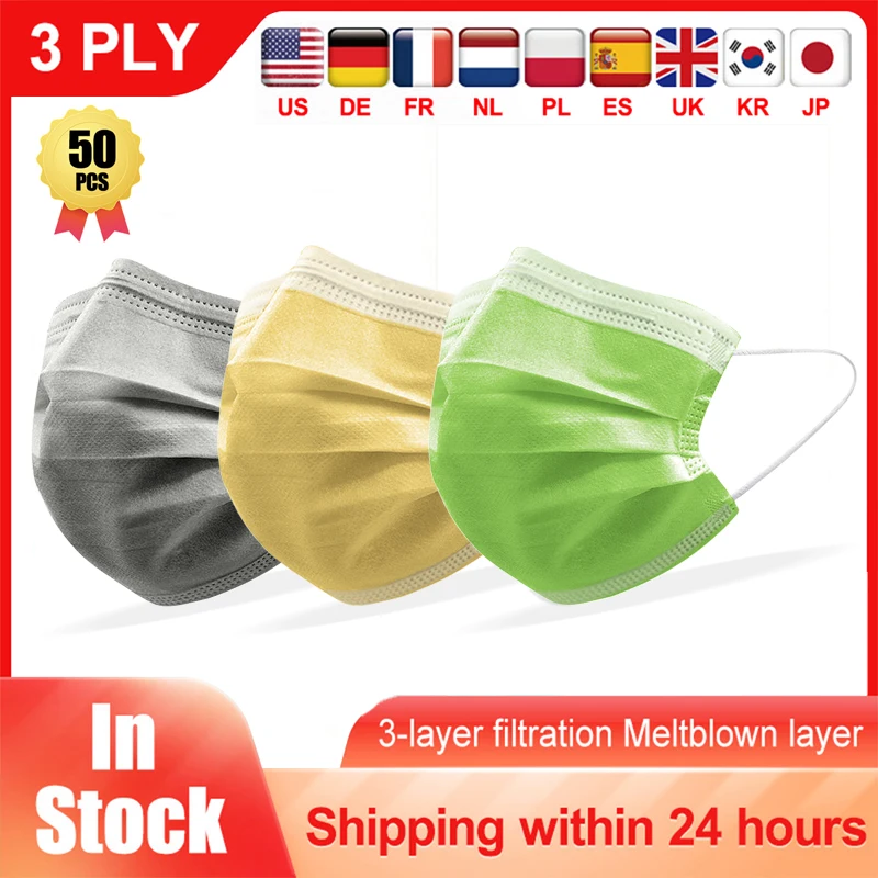 50 шт. 3 Слои одноразовая маска Нетканая Mascarillas противопылевая...