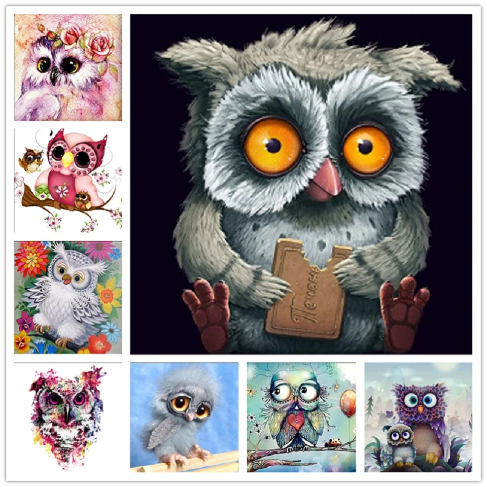Алмазная живопись сделай сам с изображением милой совы, домашний декор, вышивка крестиком, квадратнаякруглая картина