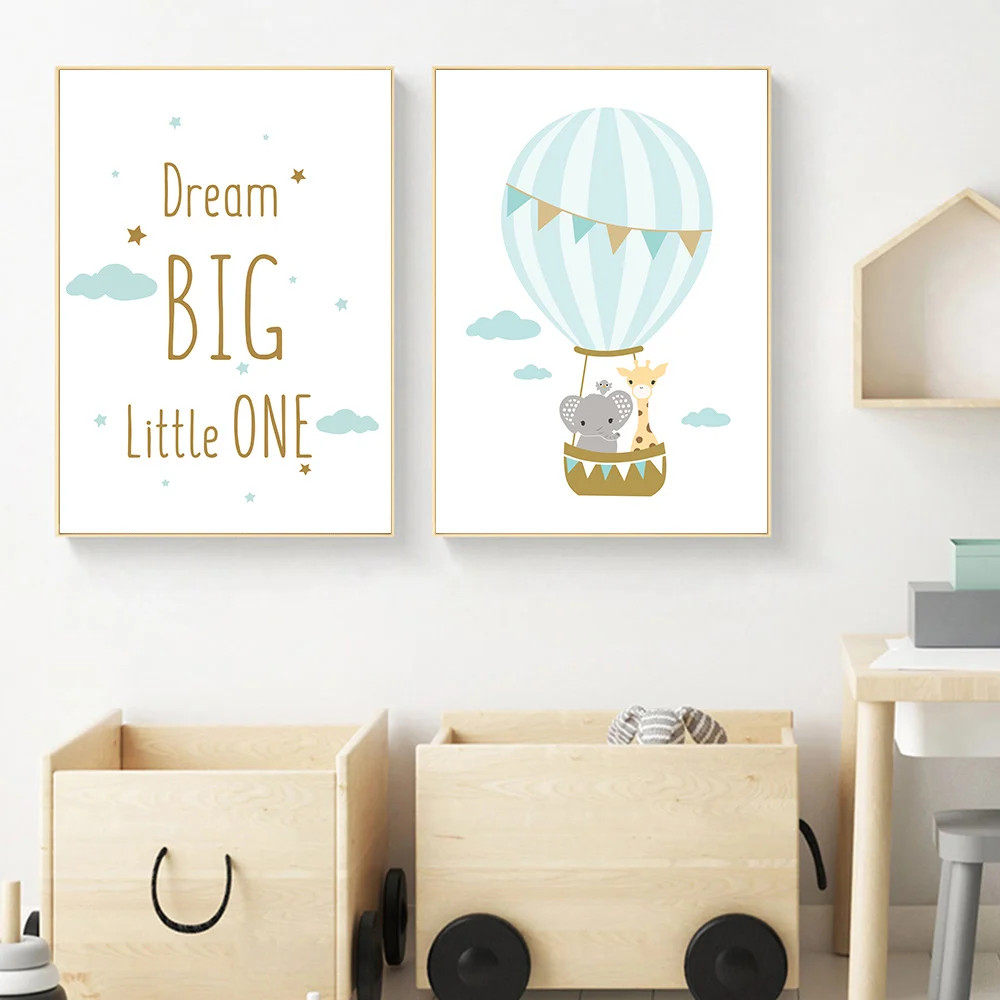 Картина на холсте жираф и слон в воздушном шаре с изображением мечт...