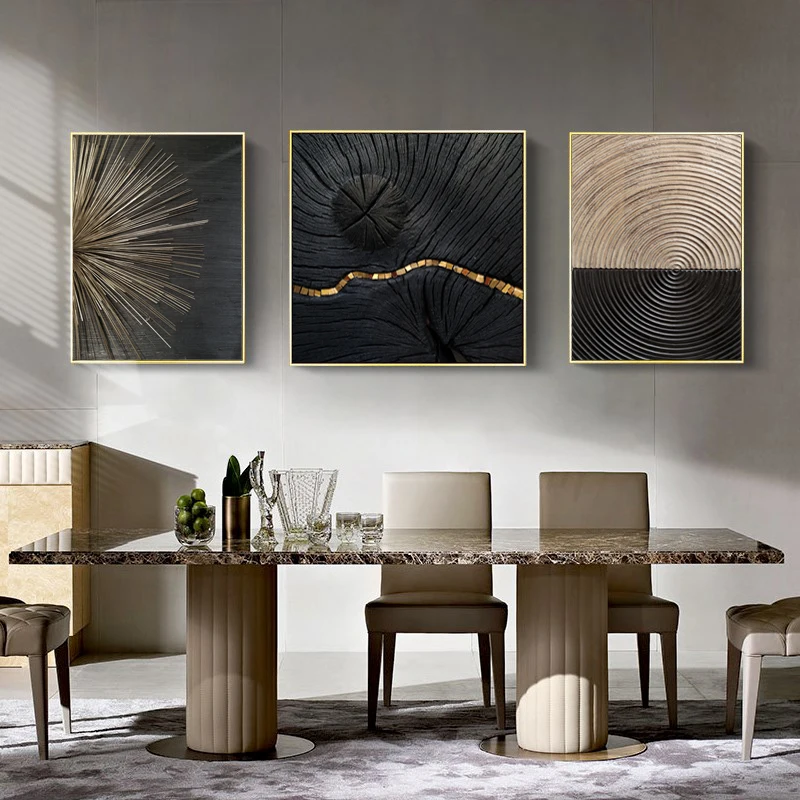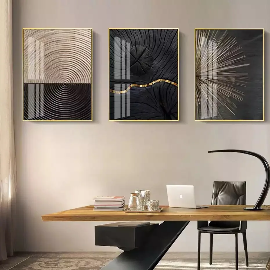 Абстрактные картины-Триптих для гостиной, минималистские Золотые ли...