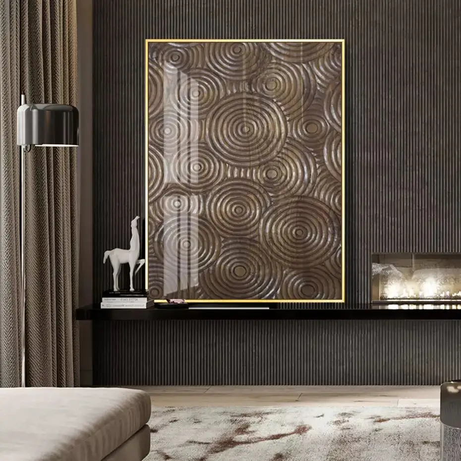 Роскошная золотая металлическая круглая настенная живопись, холст, постеры и принты для спальни, украшения для гостиной, Настенный декор
