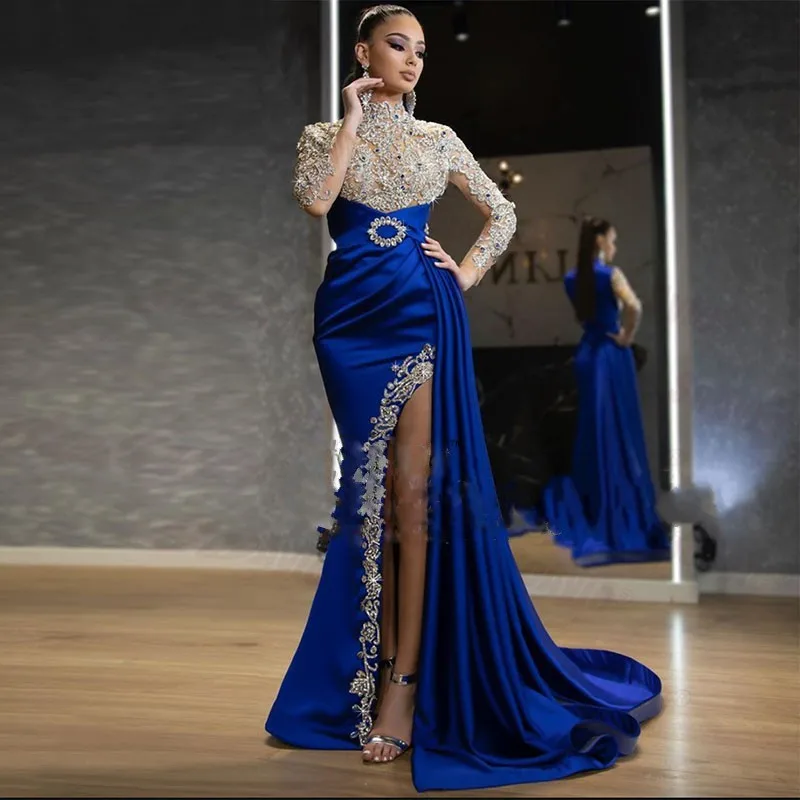 Платье для выпускного вечера с длинным рукавом и разрезом сбоку