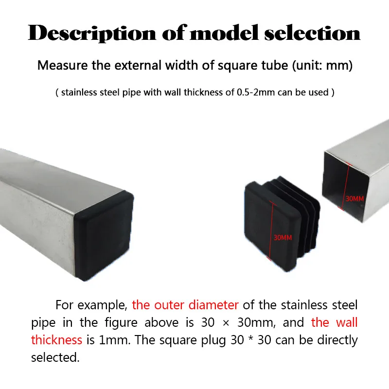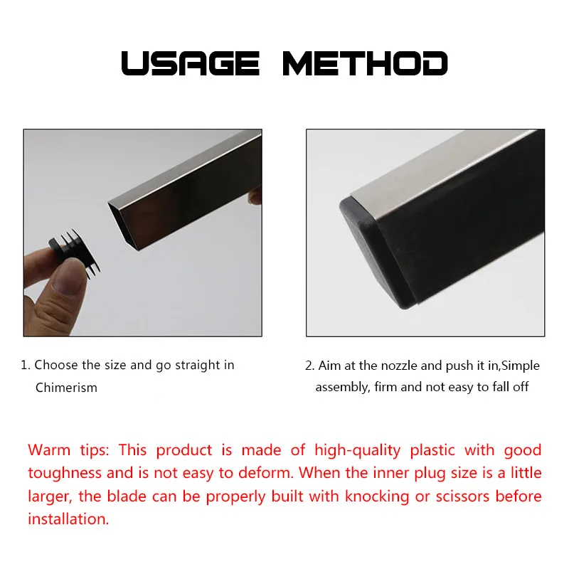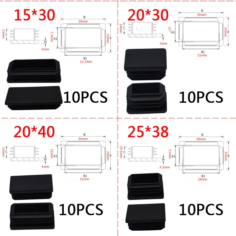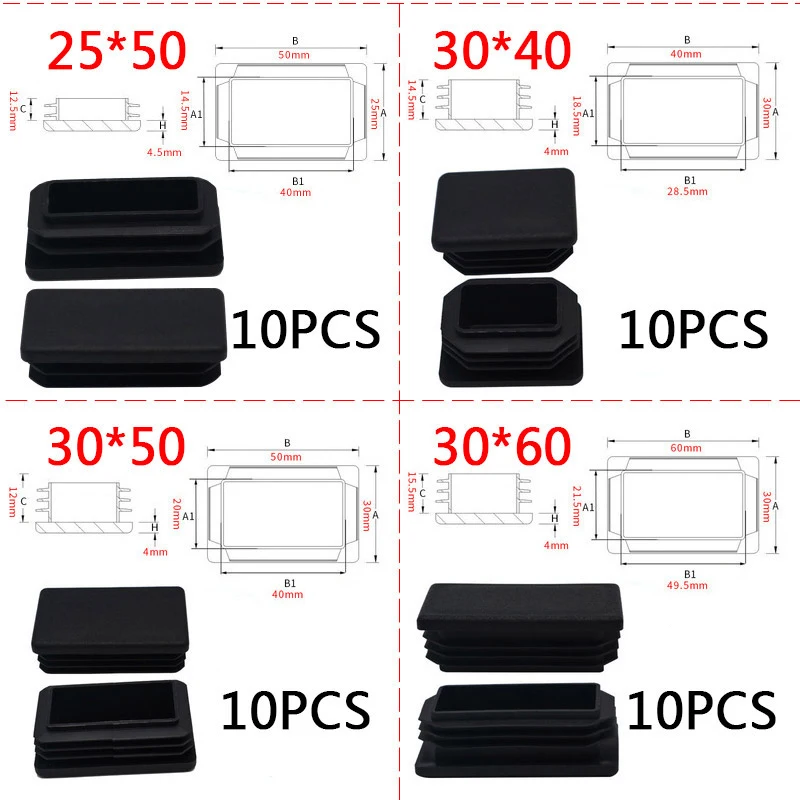 Заглушки для труб, черные, пластиковые, стальные, прямоугольные, Нескользящие, 10 шт.