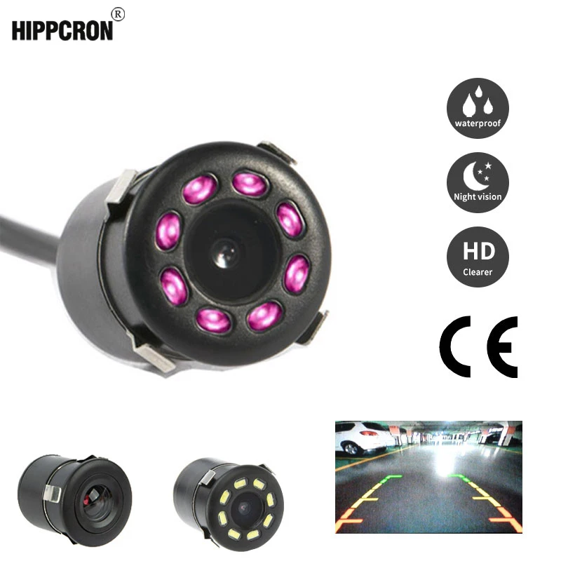 Камера заднего вида Hippcron, автомобильная инфракрасная камера ночного видения с 8 светодиодный, водонепроницаемая HD-видеокамера