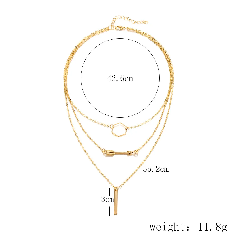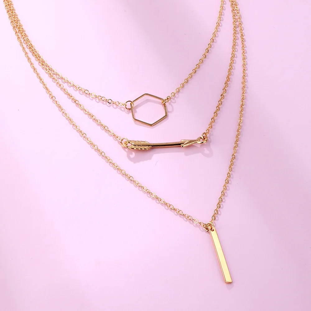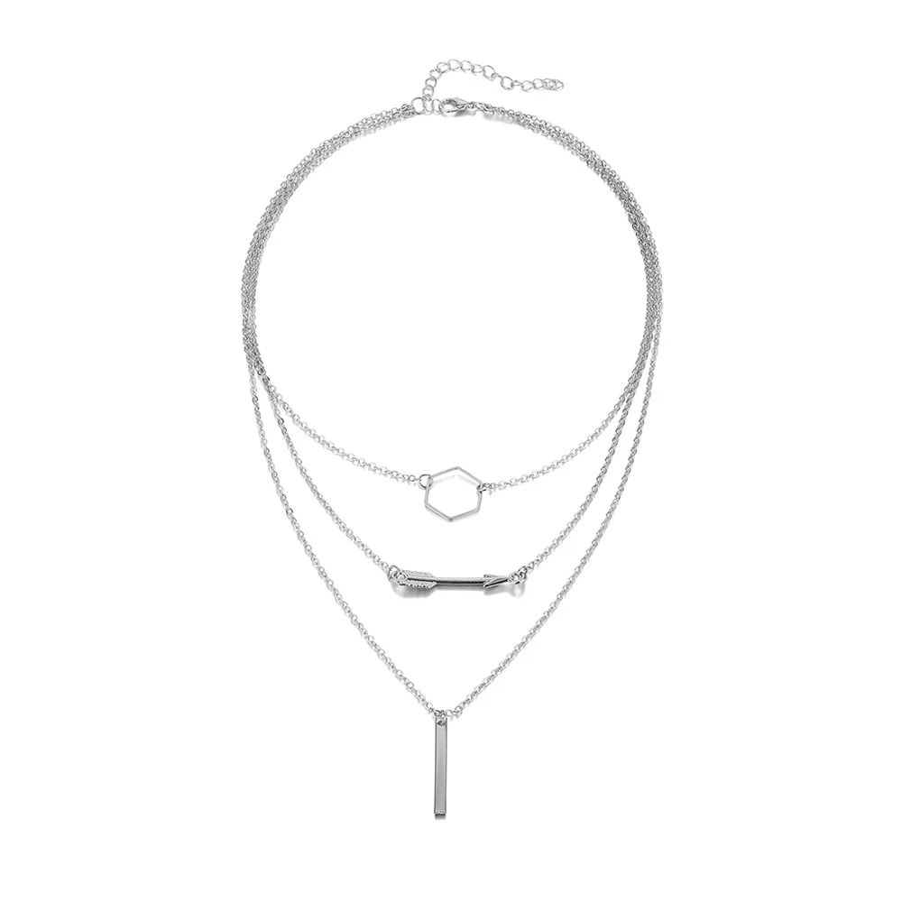 Ожерелье женское, многослойное, шестигранное, из сплава