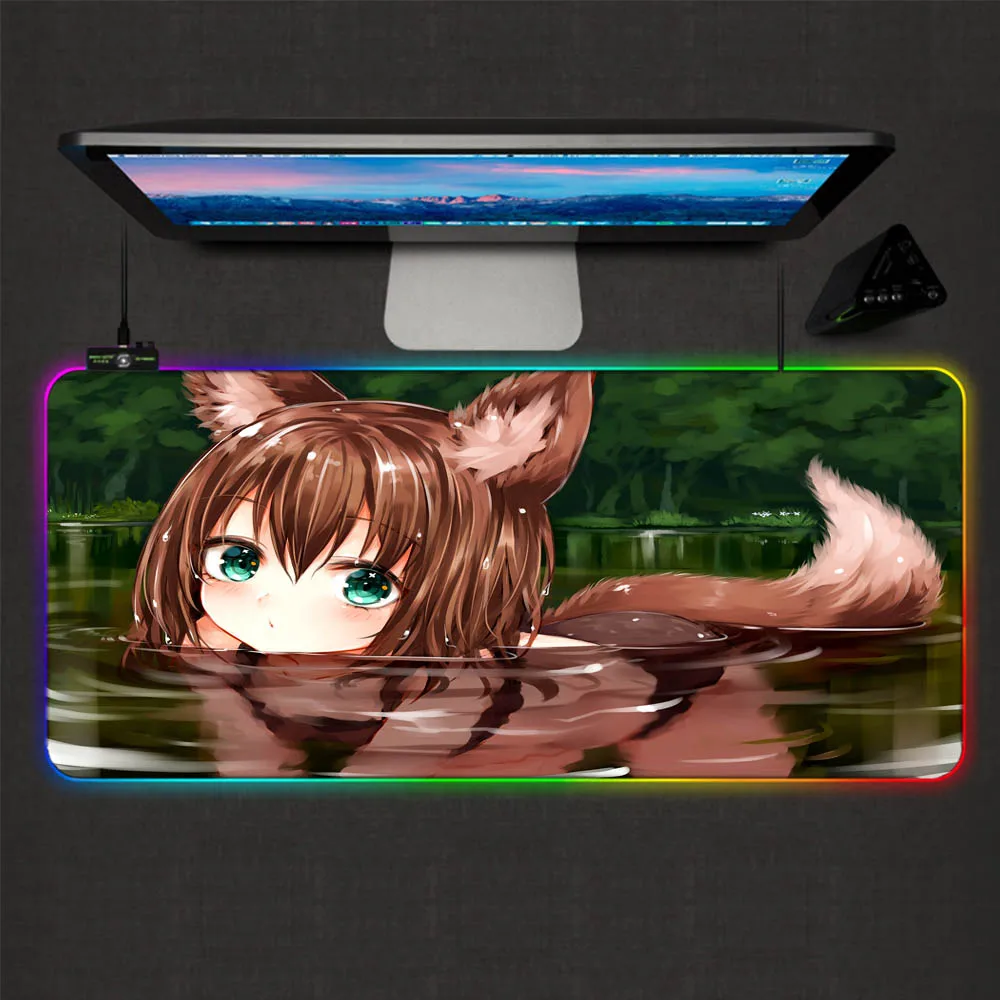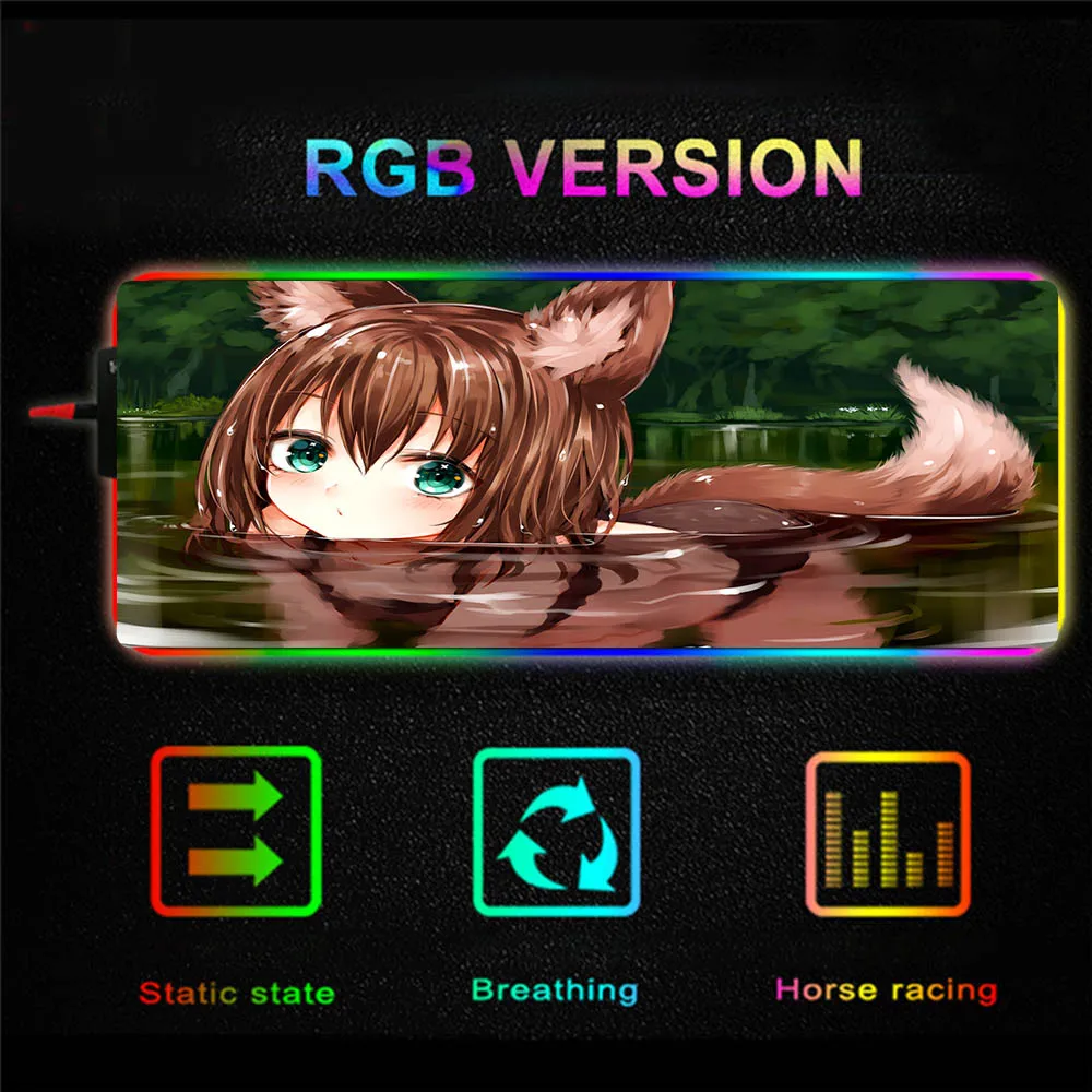 Mairuige сексуальная девушка лиса RGB демон енот розовый KDA Otaku ПК игра должна быть скорость комфорт светодиодный большой коврик для мыши для учебы офисный коврик LOL стол