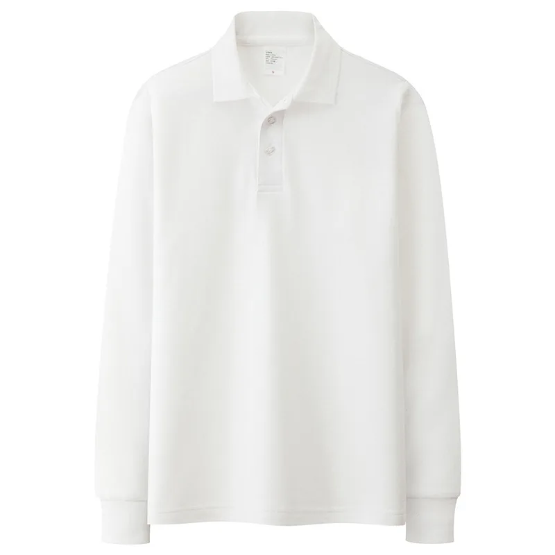 Мужская Осенняя рубашка-поло, однотонная, из 100% хлопка, с длинным...