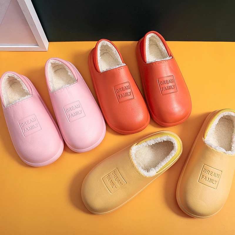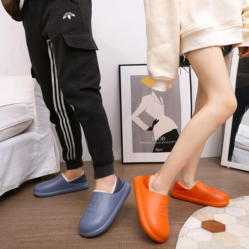 Новинка, женские домашние водонепроницаемые хлопковые тапочки с плюшевой подкладкой, теплая обувь, Нескользящие хлопковые тапочки двойного назначения для пар, мужская домашняя обувь