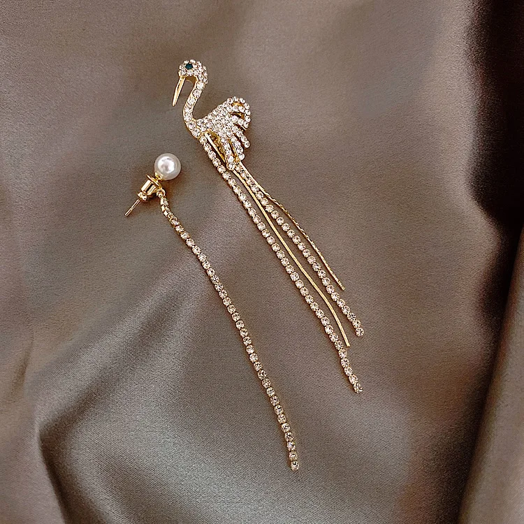 Модные асимметричные серьги с кристаллами и лебедем, жемчугом для женщин и девочек, длинные серьги с кисточками, темпераментные Простые Ювелирные изделия, подарки для женщин