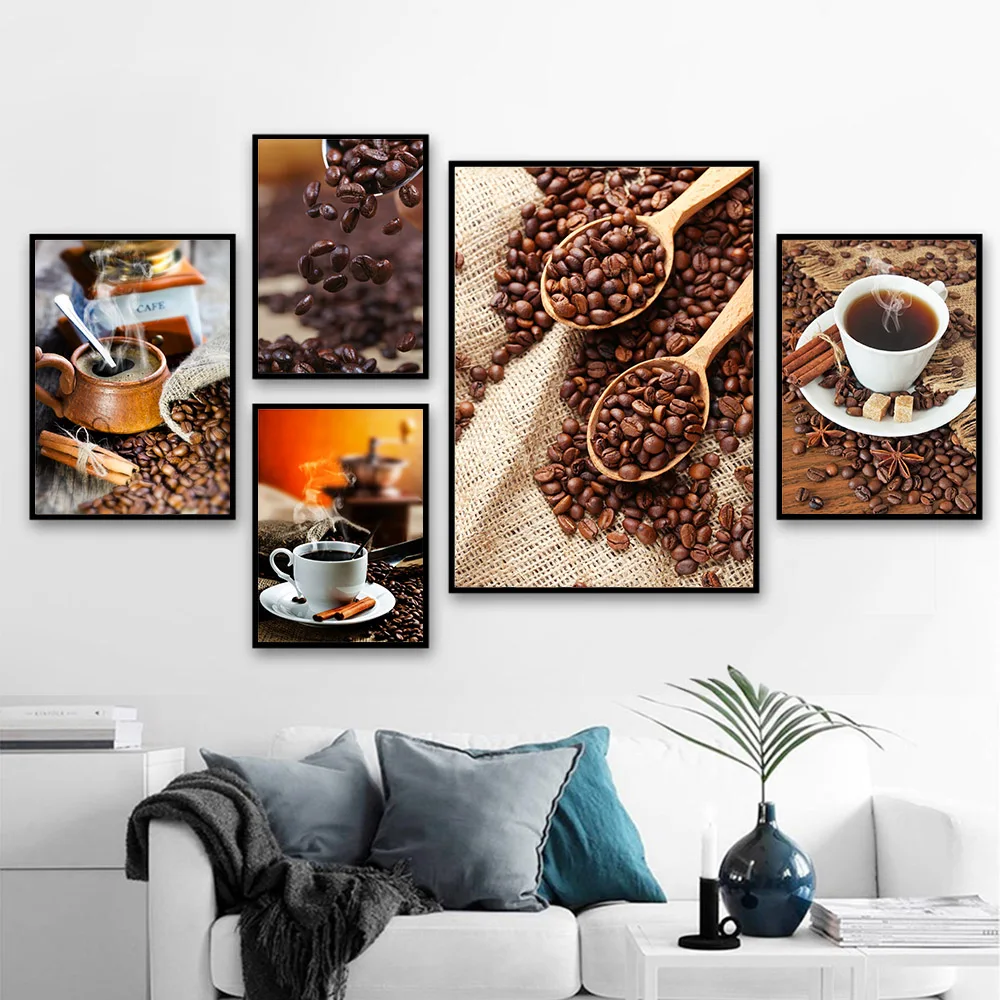 Винтажная Картина на холсте с изображением кофейных зерен, настенное искусство, кофе, домашние плакаты печать, современный реалист, украшение для дома, ресторана, гостиной