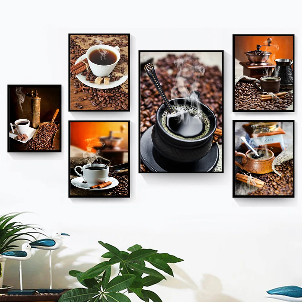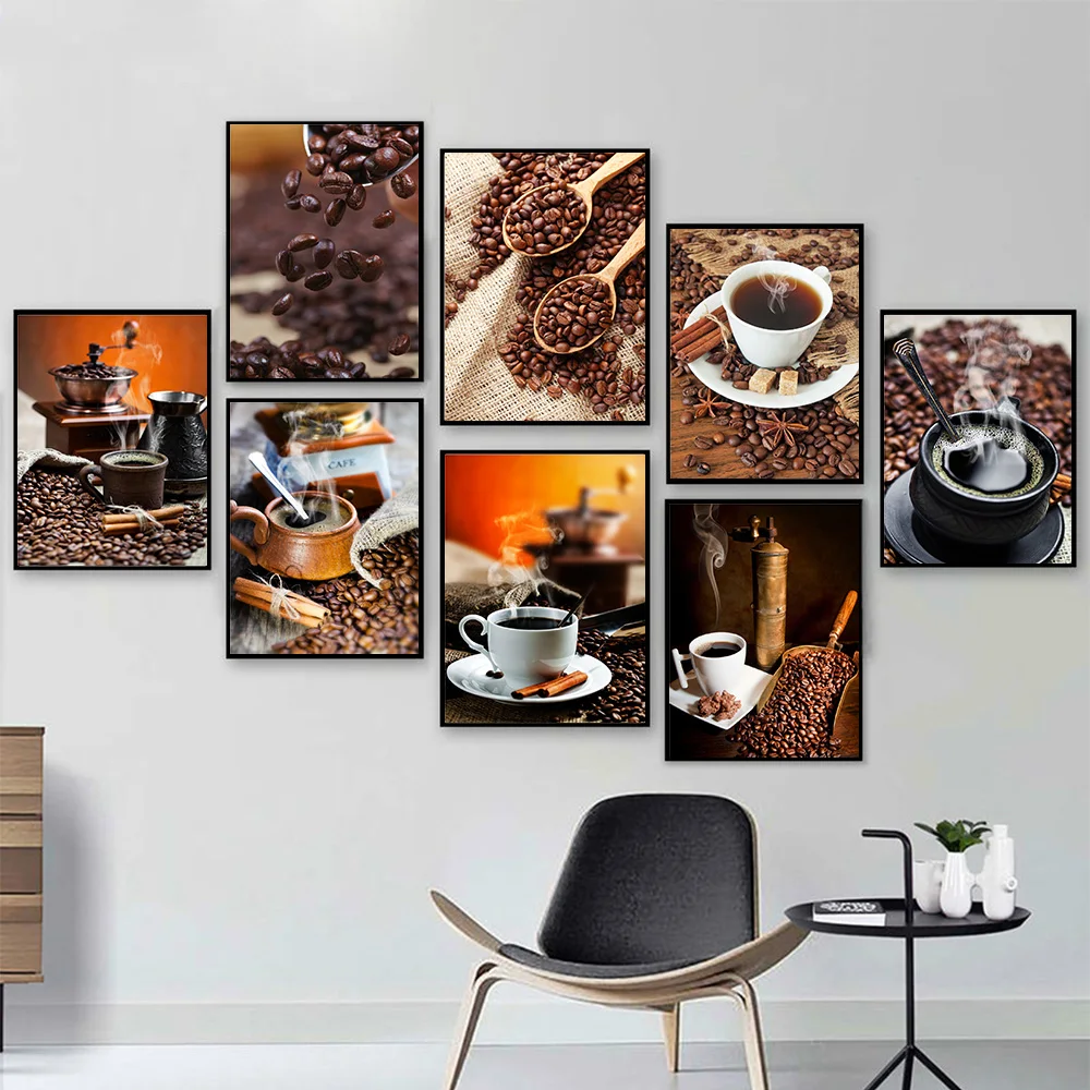 Винтажная Картина на холсте из кофейных зерен, настенное искусство, кофе, домашние плакаты принтов, современный реалист, украшение для дома, ресторана, гостиной