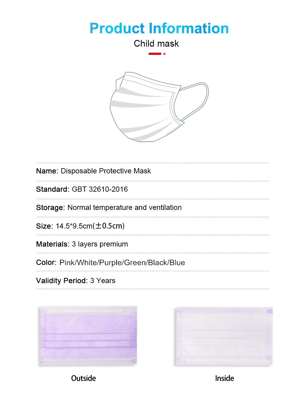 Цвет: розовый/белый/фиолетовый/зеленый/черный/синий Материал: Нетканая ткань Посылка включает в себя:10/20/50/100 шт * Одноразовые Дышащие маски