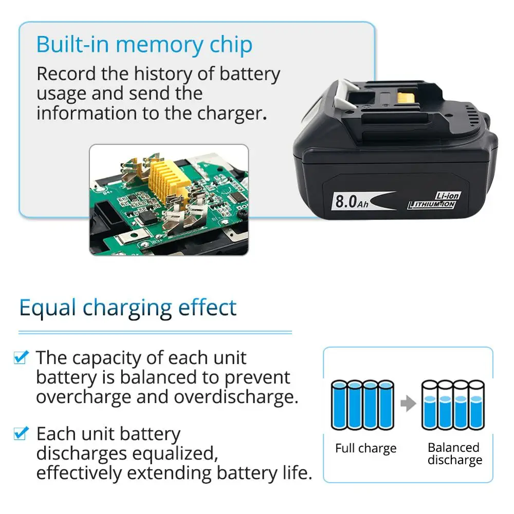 Аккумулятор BL1880B на 8000 мА ч для Makita, 18 в, BL1830, BL1840B...