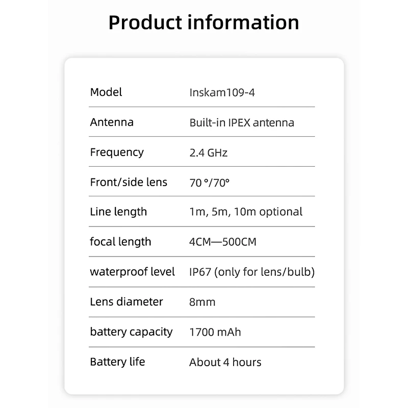 Промышленный эндоскоп с двойным объективом 500 Вт HD, 4-500 см, полный четкий фокус без размытияВысококачественный жесткий провод, свободно сгибается, ориентируется, работает прощеВстроенный высокопроизводительный полимерный литиевый аккумулятор, низкое энергопотребление, более длительный срок службы батареи до 4 часовIP67 водонепроницаемый, внутренняя часть линзы запечатана специальным клеем, который способен работать под водой.Широкий спектр применений, таких как обслуживание автомобилей, канализация, обслуживание кондиционеров, механическое обслуживание и т. Д.Антенна: встроенная антенна IPEXРабочая частота: 2,4 ГГцПередняя/боковая линза: 70/70 °Степень водонепроницаемости: IP67 (только для объектива/лампы)Емкость аккумулятора: 1700 мАРазмер: 15x13x7 смМатериал: АБСЦвет: черныйПосылка1 * эндоскопВ комплект входит только указанное выше содержимое, другие продукты в комплект не входят.Примечание: светильник вая съемка и различные дисплеи могут привести к тому, что цвет товара на изображении будет немного отличаться от реального. Допустимая погрешность измерения +/- 1-3 см.