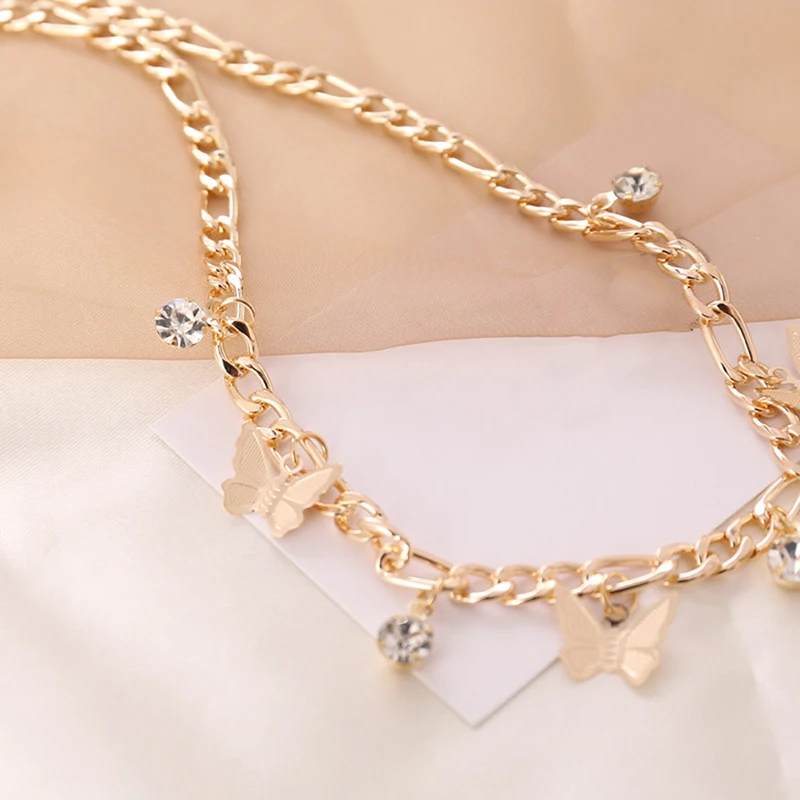 Красота с украшением в виде кристаллов женские колье золотой Цвет, модная одежда на день рождения украшения Толстая Длинная цепочка бабочка вечерние ожерелье