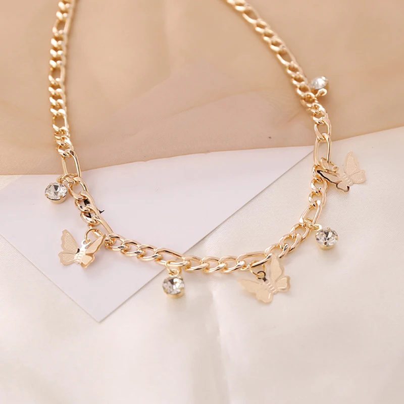 Винтажные золотые цепи бабочка подвеска ожерелье-чокер с подвесками...