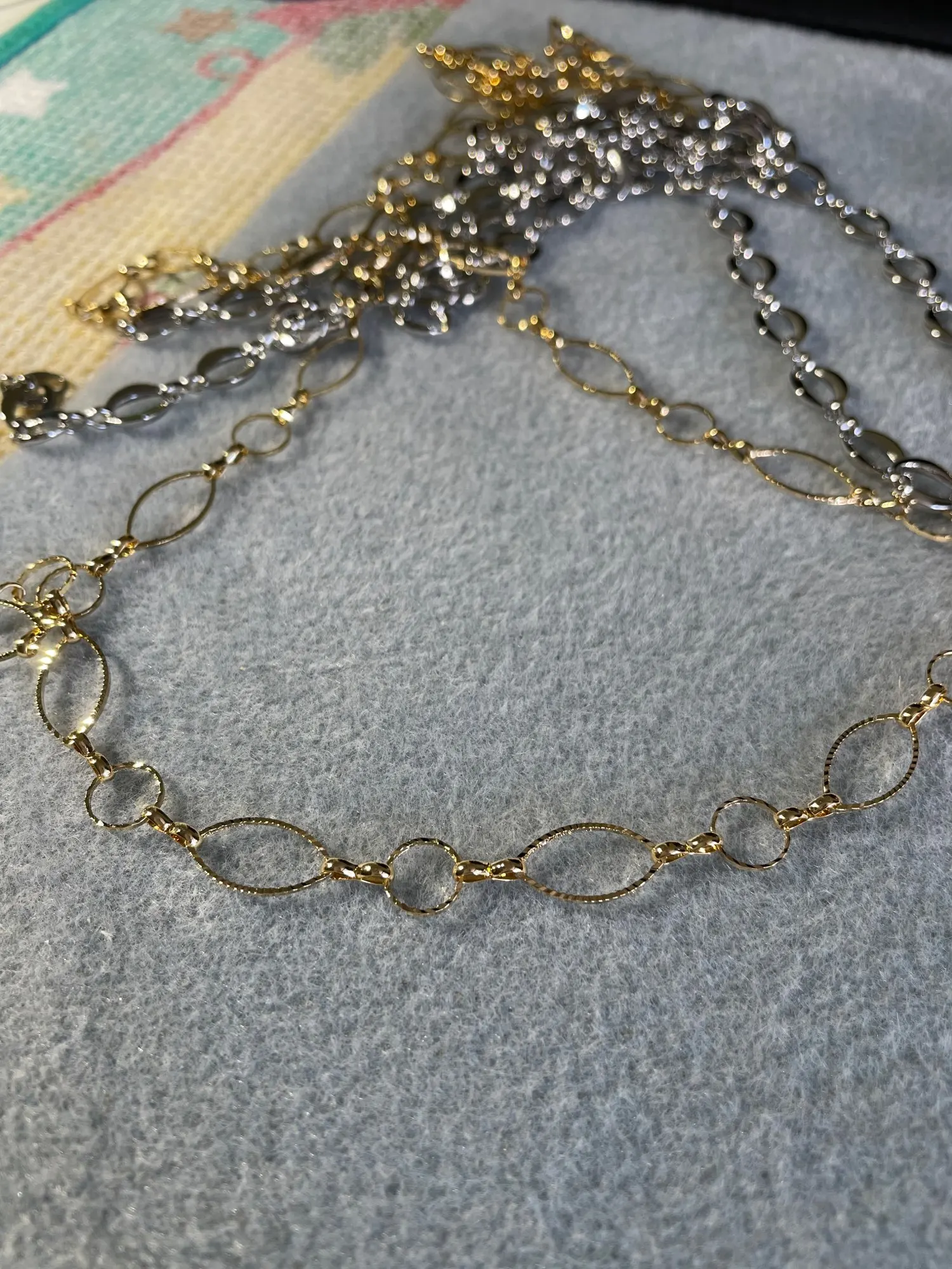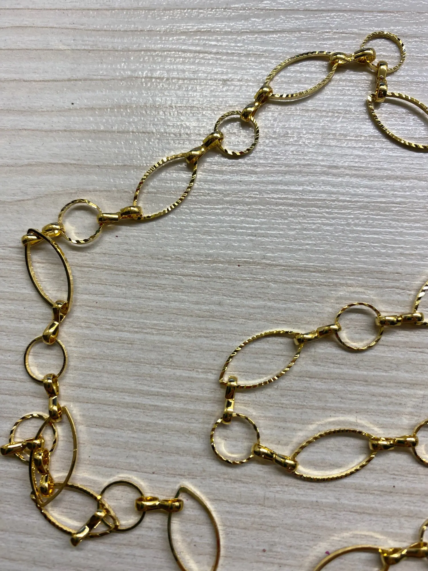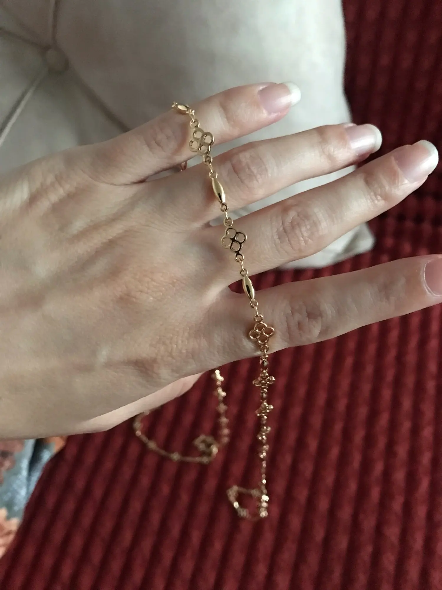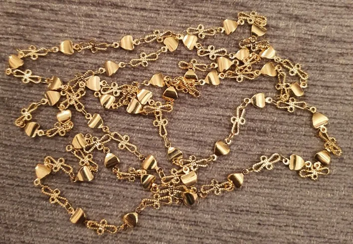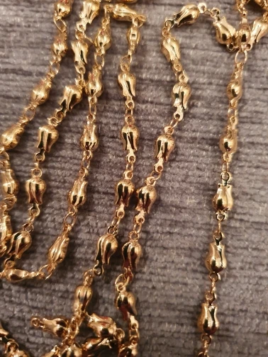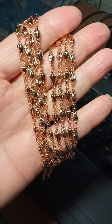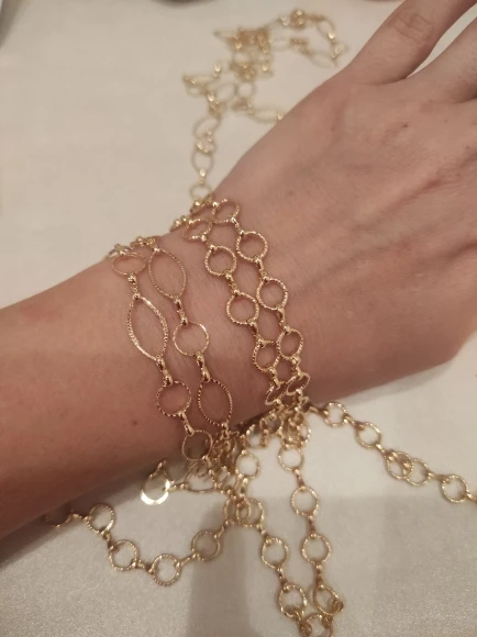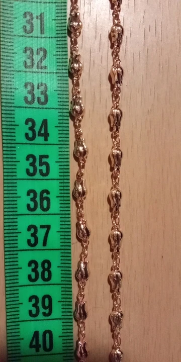 Очень красивая цепочка, но звенья оказались меньше, чем я ожидала по фото и указанному размеру — 0,66 см. Цвет золота приятный, благородные, без желтизны.