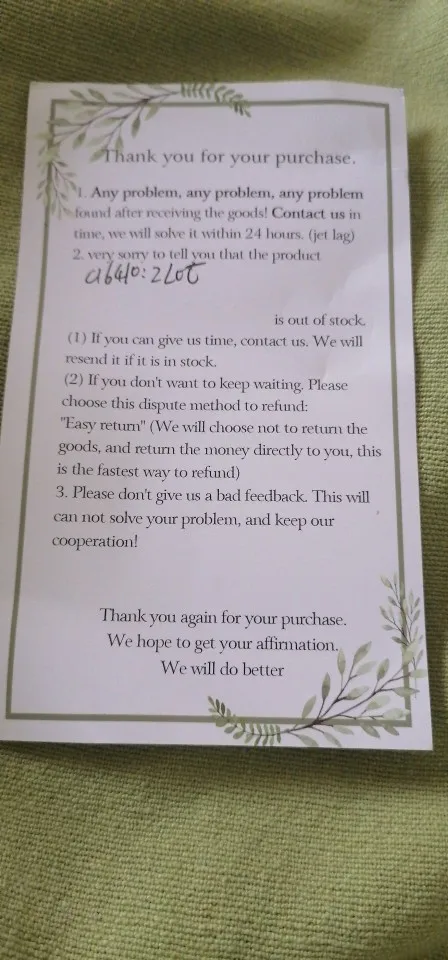 Продукт без акций, и я сделал другие последующие заказы, а также не в состоянии, включенные до сих пор без акций, продавец говорит мне, чтобы открыть спор и возврат, но он потерял почти 40% лучше, я хочу, чтобы вы отправили мне аналогичный продукт что он рекомендует меня. Чтобы не потерять так много.