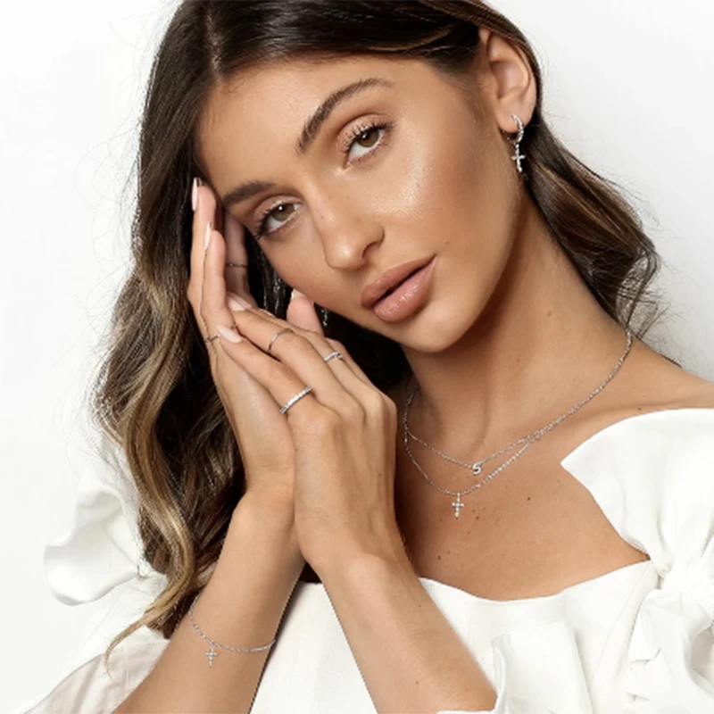 Цепочка женская из серебра 925 пробы с кулоном в виде креста с прозрачным цирконием