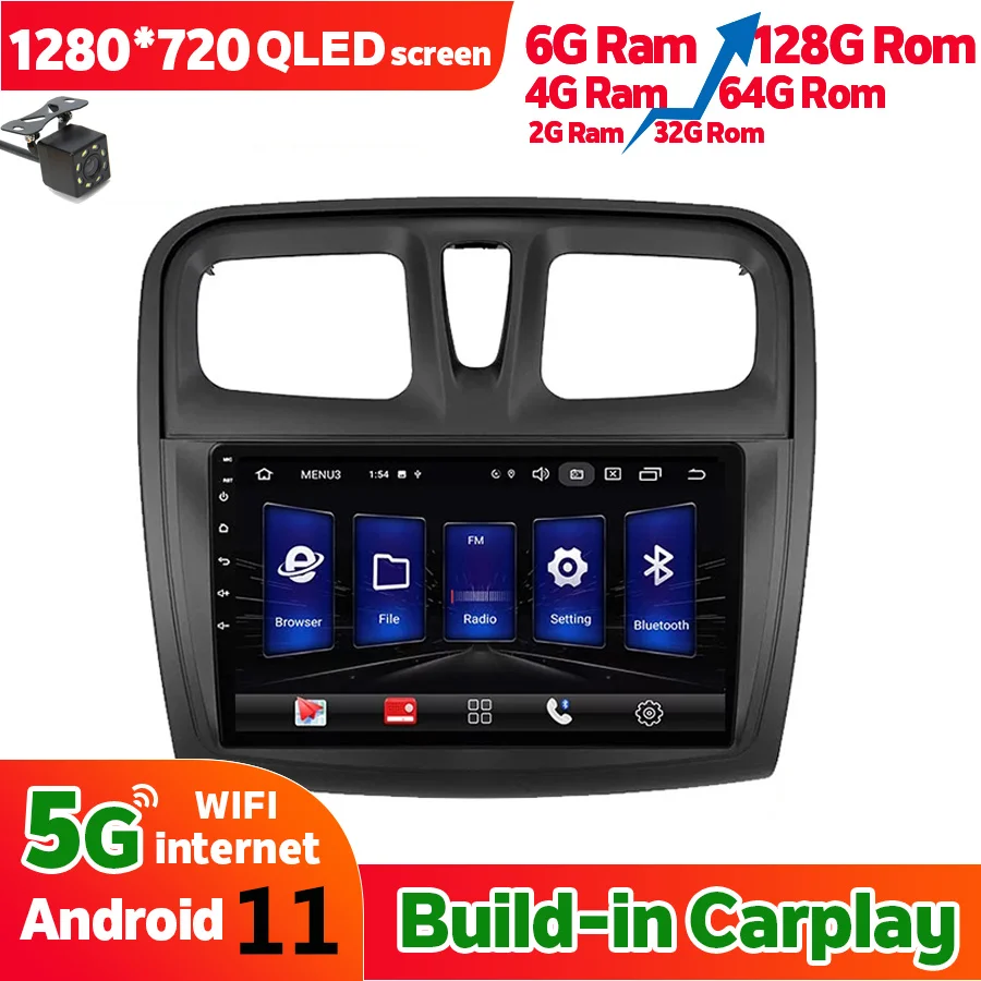 Автомагнитола с GPS-навигацией, 6 ГБ ОЗУ, 128 Гб ПЗУ, для Renault Sandero Symbol 2014, 2015, 2016, Android 11