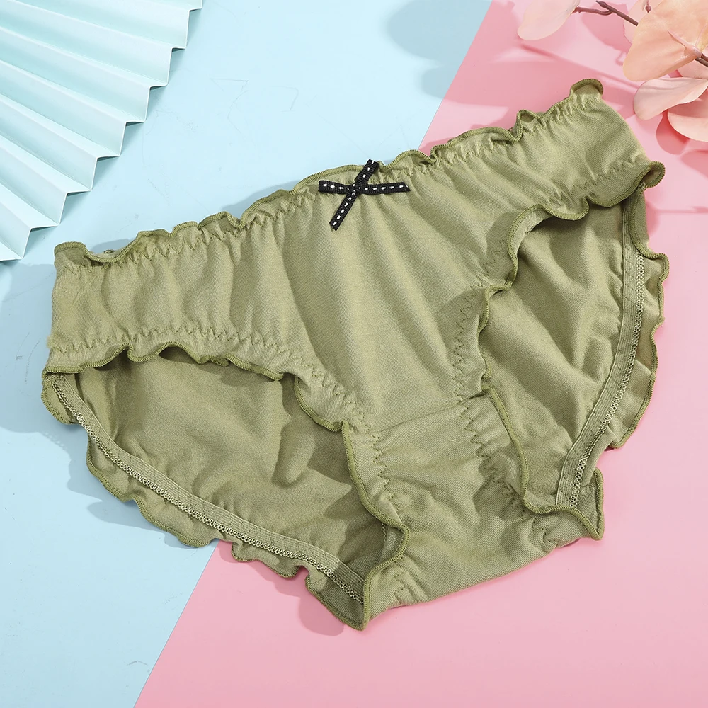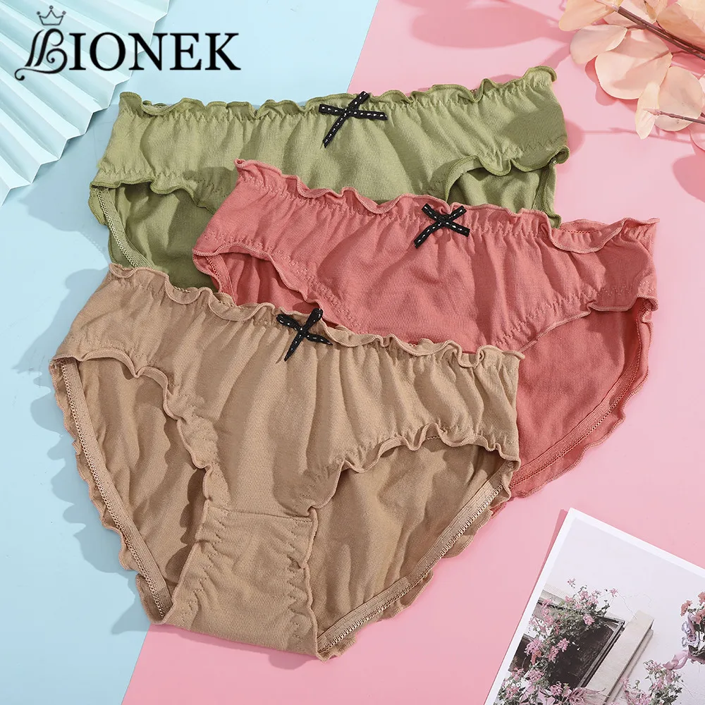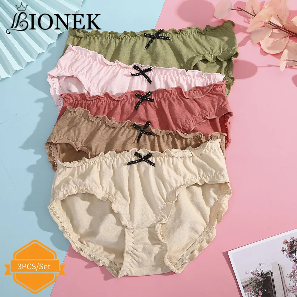 BIONEK, комплект из 3 предметов, Милый Лук рюшами нижнего белья для женщин Плиссированное нижнее белье хлопковые трусы шорты ультра-тонкий комплект нижнего белья милые трусы для девочек с героями мультфильма