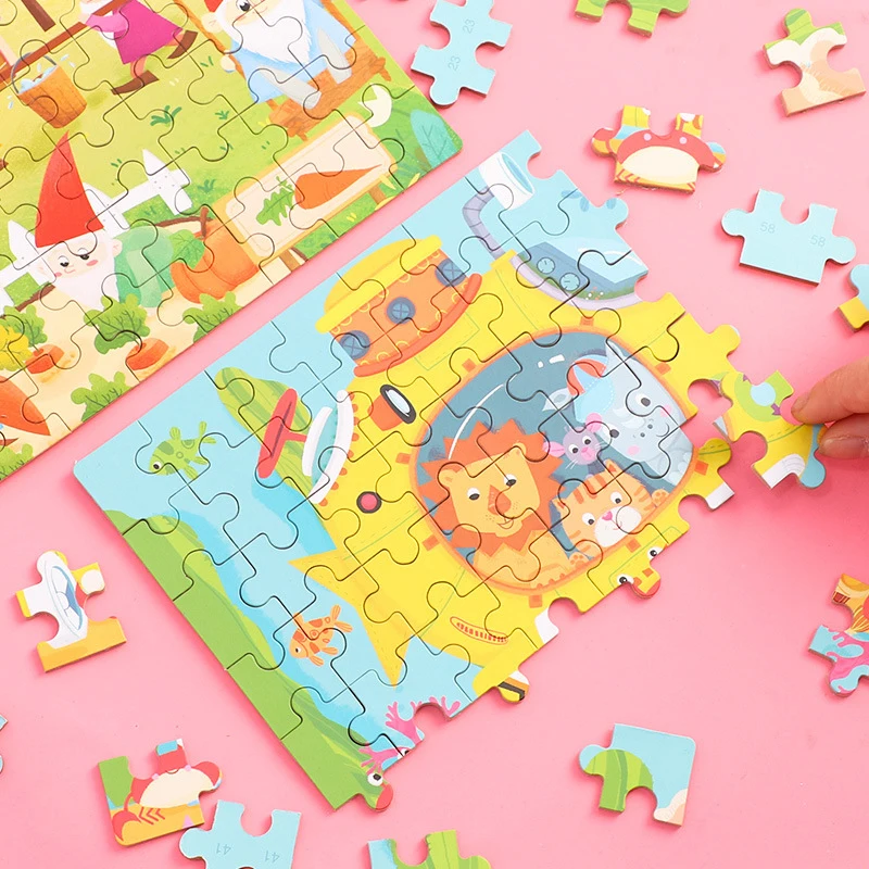 Детский деревянный 3D-пазл Монтессори, 60 шт., мультяшный автомобиль, деревянный пазл, развивающая игрушка для детей, рождественский подарок
