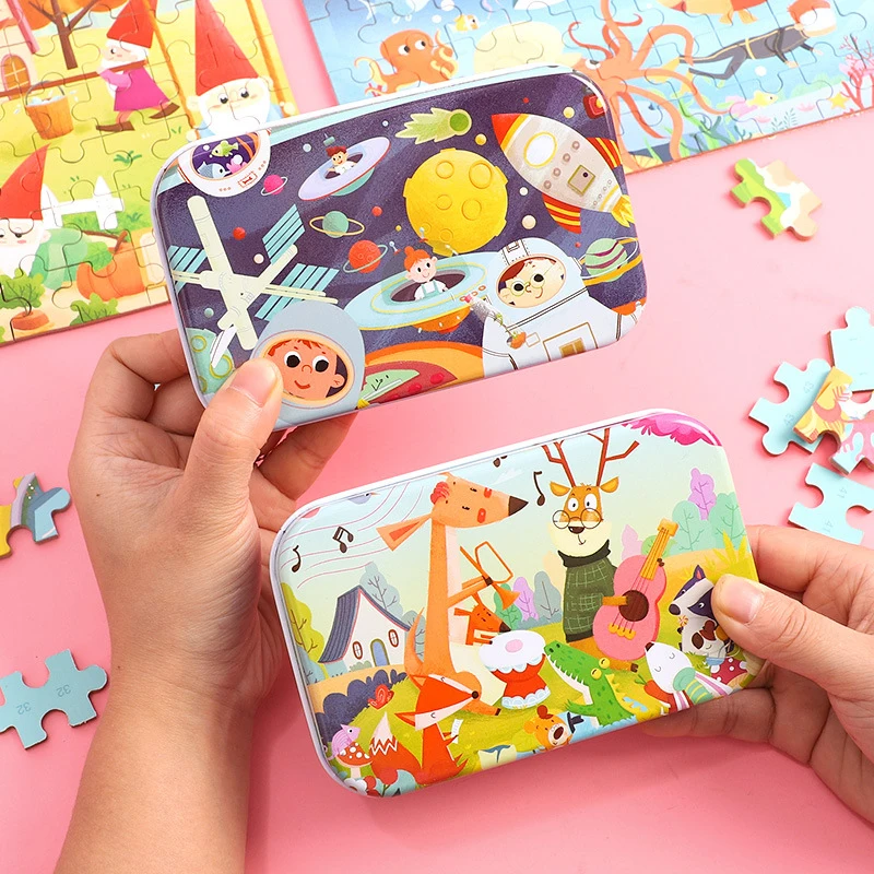 Материал: дерево Цвет соответствует: как на картинке Пол: унисекс Возрастной диапазон: > 3 лет Размер продукта: как на картинке Особенности: интеллектуальное развитие Лучшие подарки для игр родителей и детей Посылка входит: игрушка-пазл с железной коробкой, 1 комплект