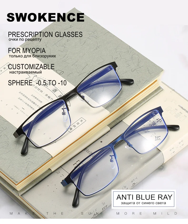 Очки для близорукости SWOKENCE F513 для мужчин и женщин, от-0,5 до-10, защита от синего света