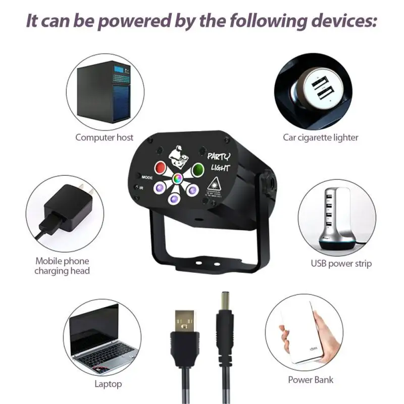 Миниатюрный светодиодный RGB диско-светильник, лазерный сценический прожектор красного, синего, зеленого цветов, лампа с USB-зарядкой для свадьбы, дня рождения, вечеринки, 120 узоров