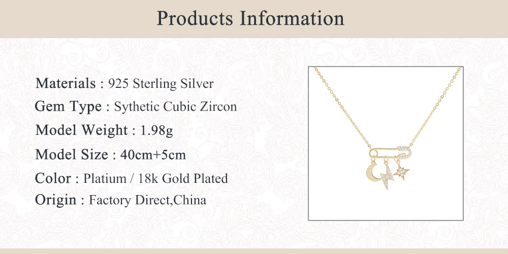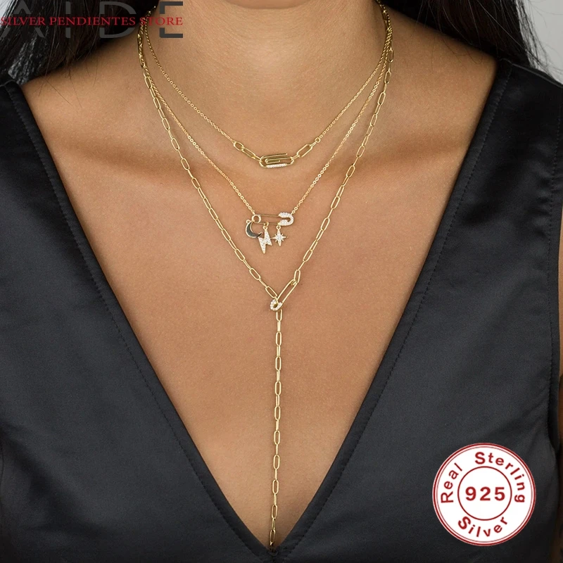 Ожерелье с подвеской в виде звезды и Луны из стерлингового серебра 925 пробы для женщин