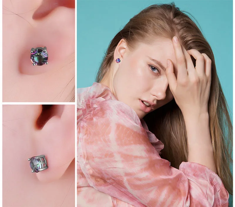Черный Ангел 925 стерлингового серебра Радуга Мистический топаз драгоценный камень CZ, серьги со шпилькой, для женщин, модные ювелирные изделия для свадьбы подарок на Новый год