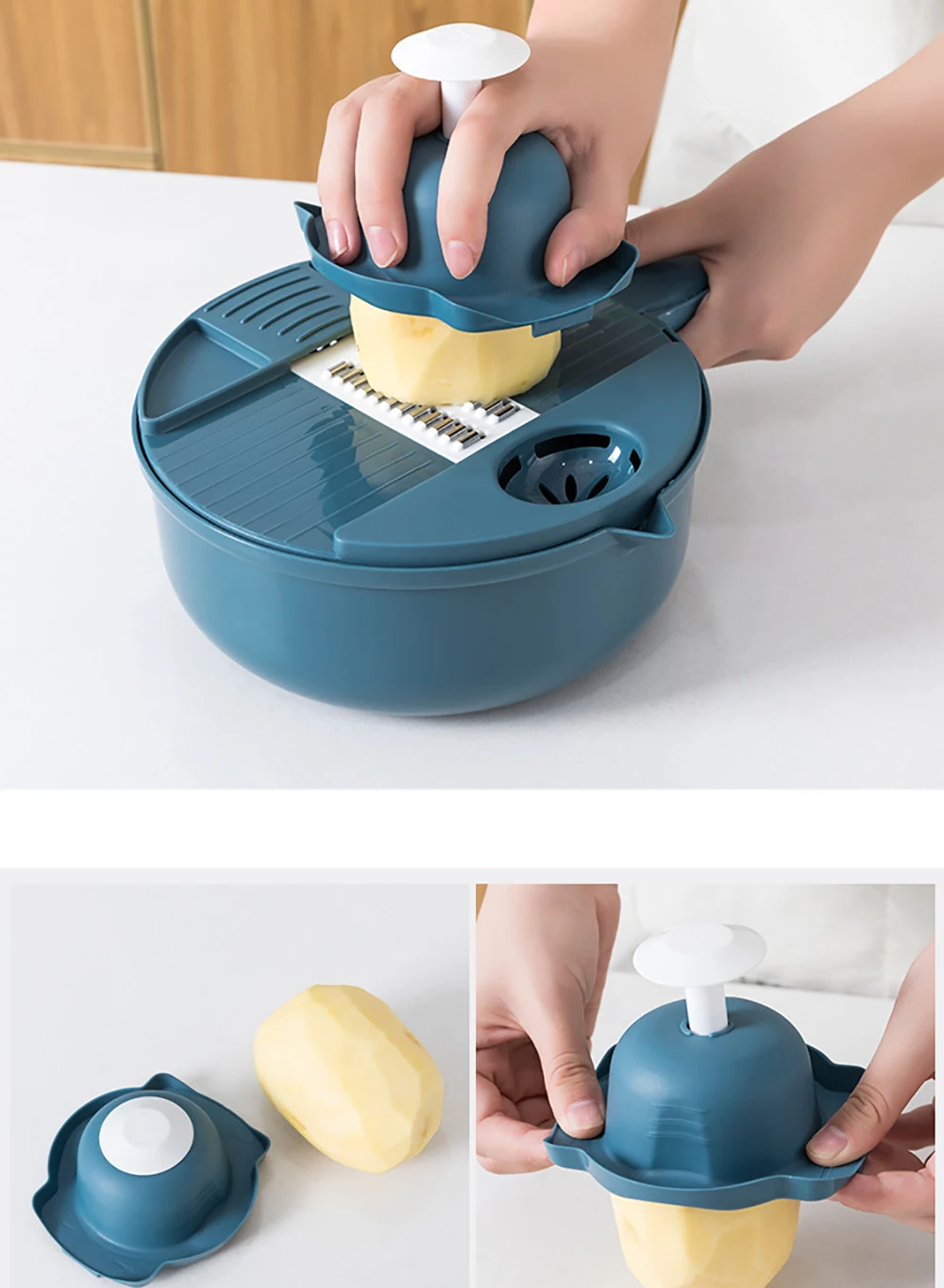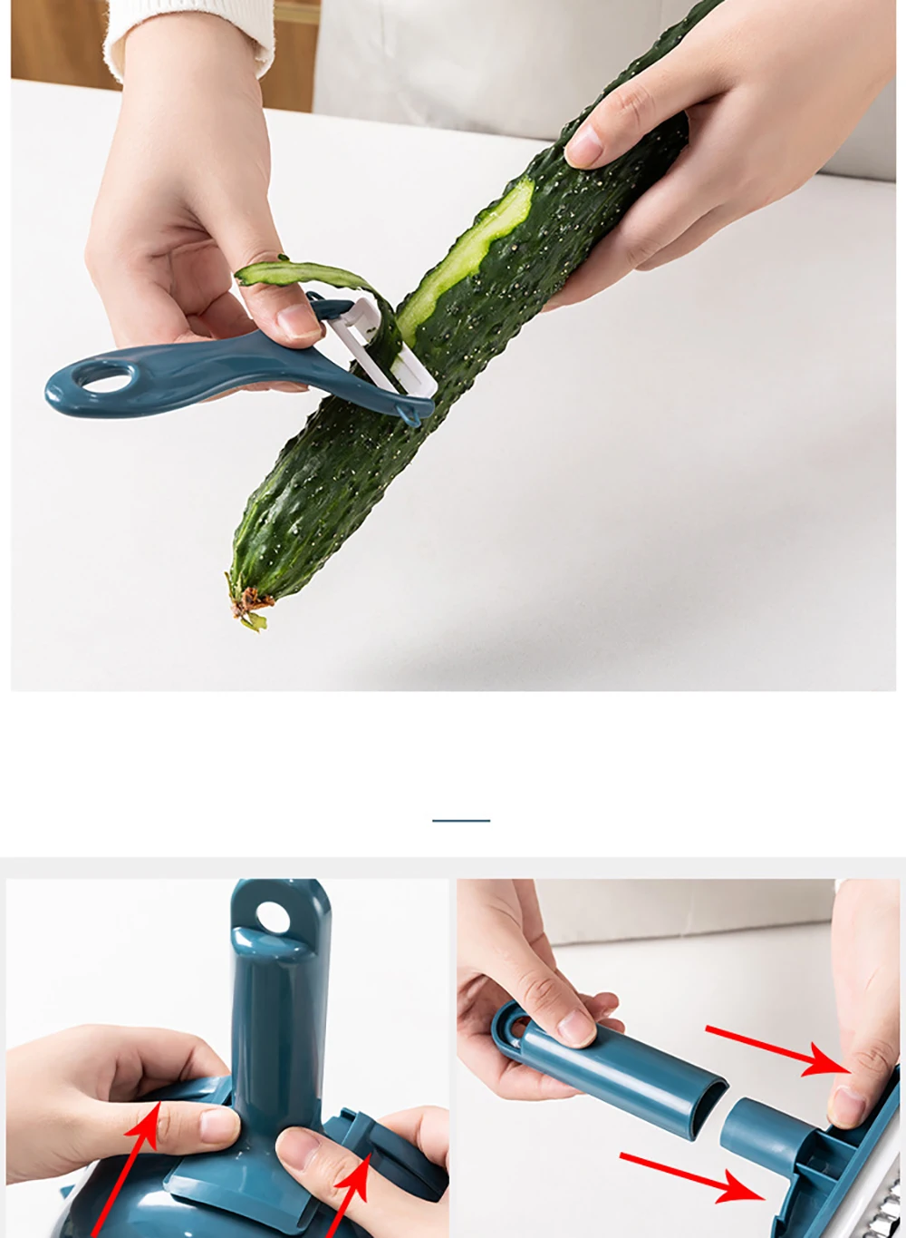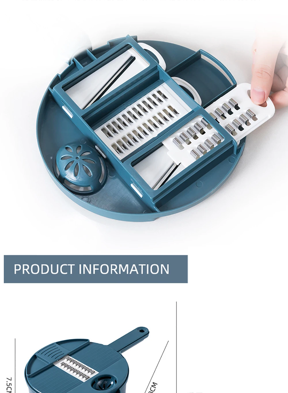 Название продукта: многофункциональный нож для овощей Цвет: синий/темно-синий/зеленый/розовый/белый Материал: ПП (часть корпуса) + АБС (ручка) Материал лезвия: 420 нержавеющая сталь Сертификация: FDA Вес нетто: 435 г Размер упаковки: 20.5x20.5x9CM
