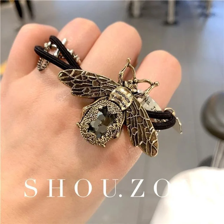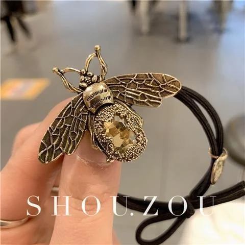 Женские резинки для волос в стиле ретро с Пчелой, элегантные Стразы с кристаллами и хвостиком, женские резинки для волос, аксессуары для девочек