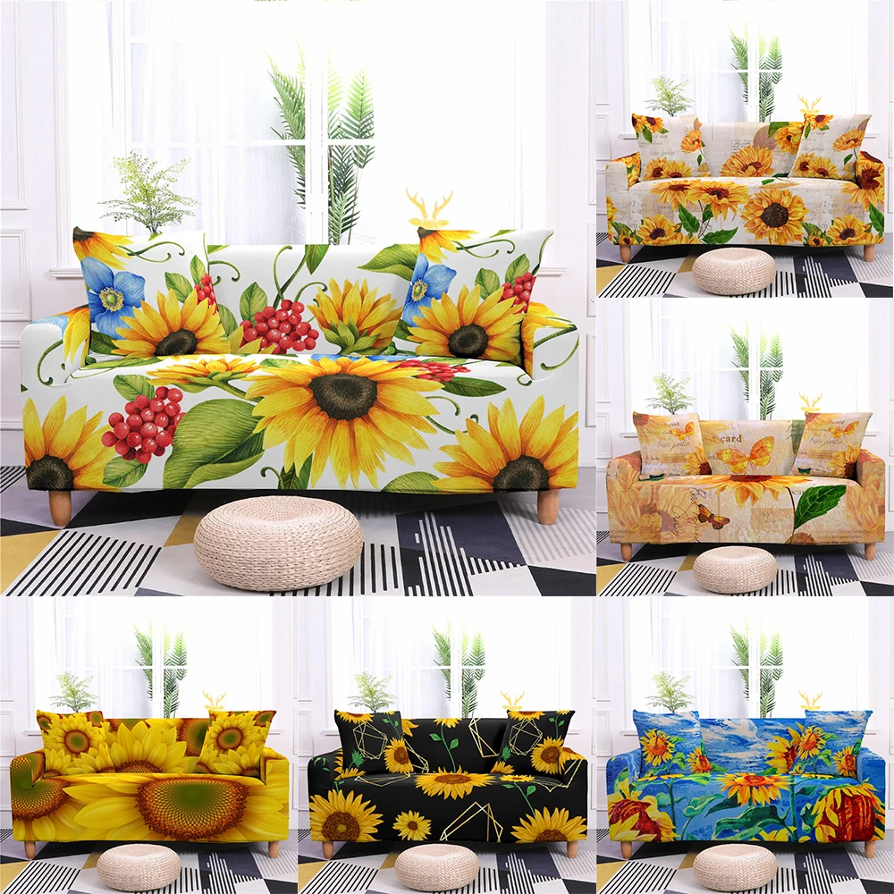 С цветочным узором подсолнуха стрейч диван крышка Эластичный чехол для дивана l-образный Чехол диван чехлов для Гостиная 1234 сидения, цена производителя